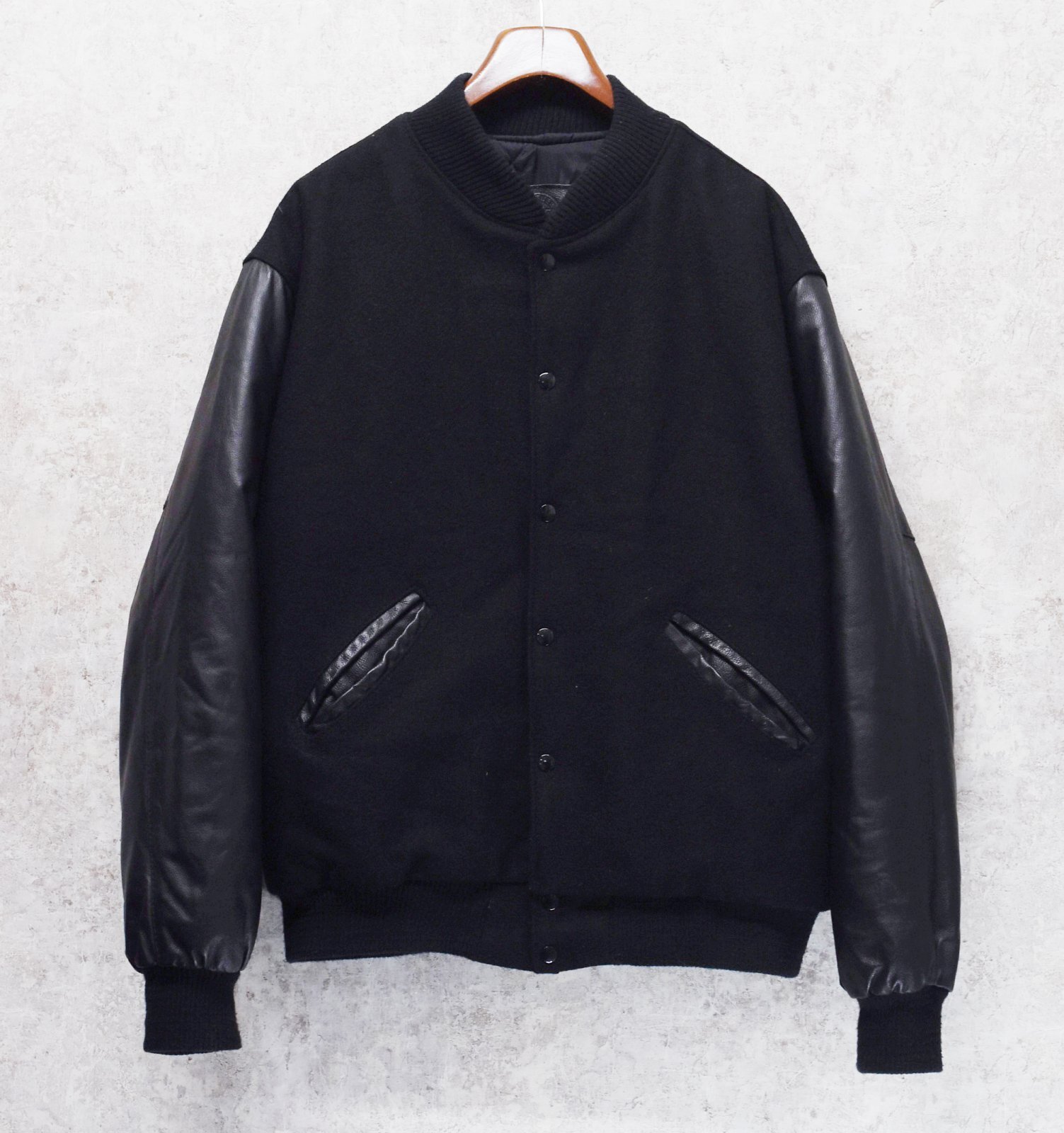 90’s~【USA製】【HEAVY DUTY】ビンテージ【鷲】ワシ バックプリント【メルトンxレザー】【黒】【スタジャン】【サイズXL】