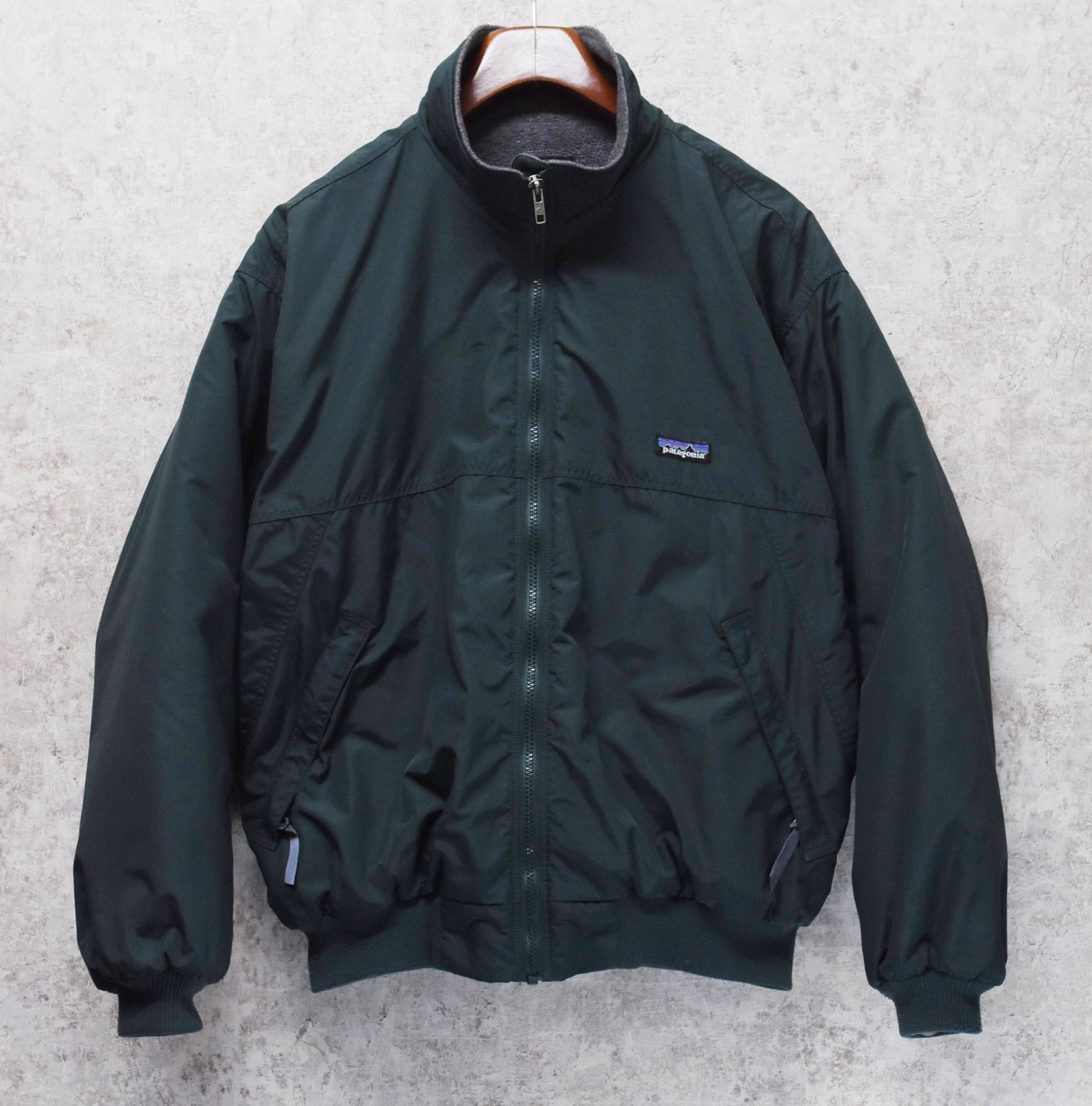 90's USA製【パタゴニア】patagonia ナイロン【シェルドシンチラジャケット 】【緑×裏地グレー】【裏フリースブルゾン】【サイズM】