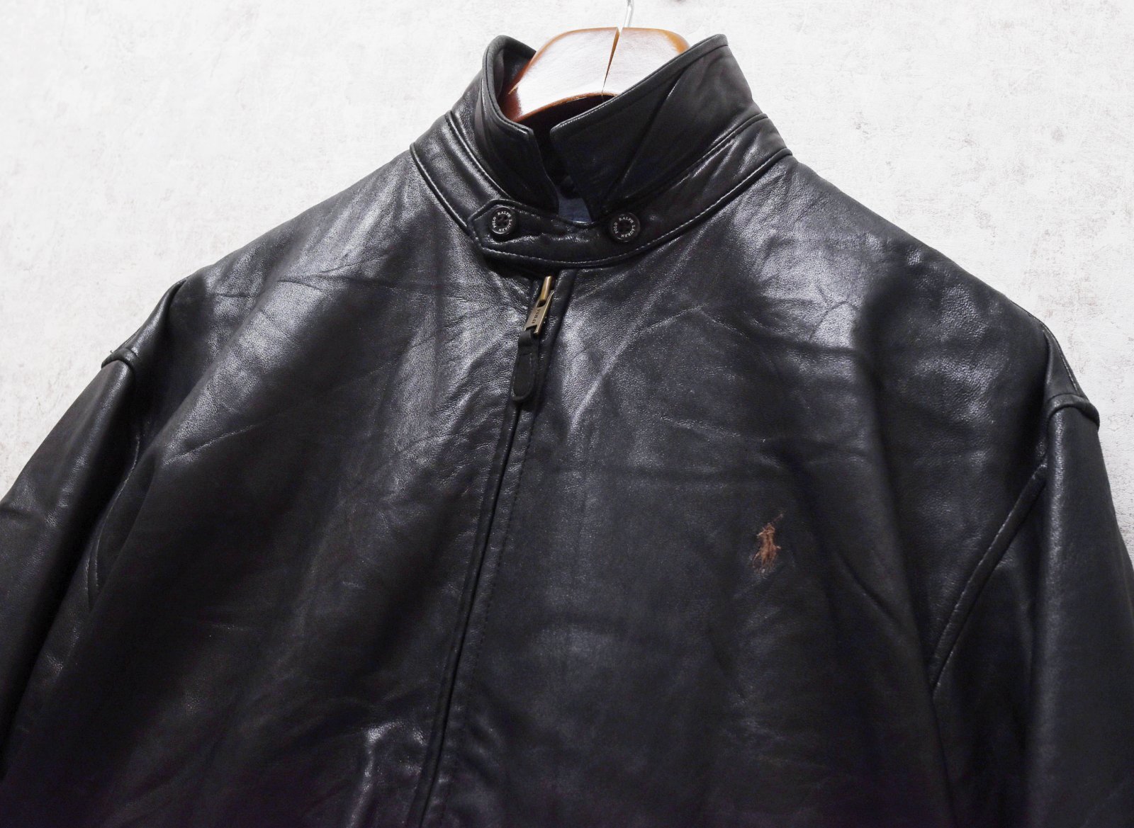 ビンテージ【ラルフローレン】POLO RALPH LAUREN【黒x裏地ブラックウォッチ】ラムレザー【ジップアップレザーブルゾン】【サイズM】
