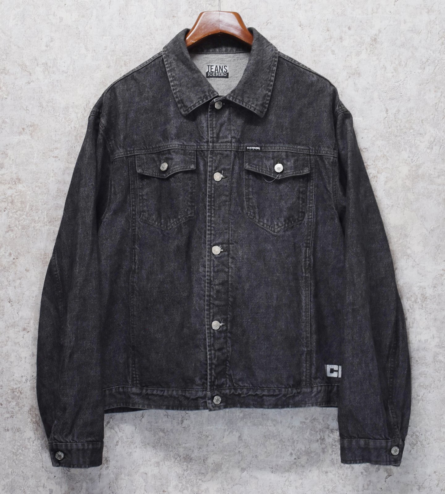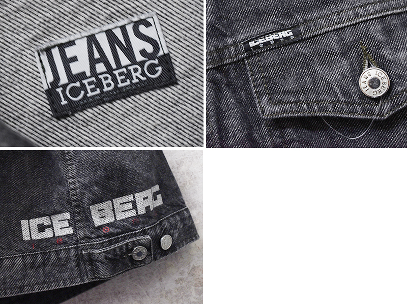 程度良好【イタリー製】ビンテージ【ICE BERG】アイスバーグ【ブラック】黒【デニムジャケット】【サイズXL】