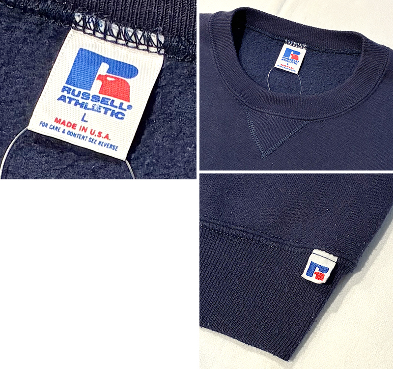 90's【USA製】【RUSSELL】ラッセル 【ビンテージ】紺【無地】【クルーネック】前V スウェット【サイズL】