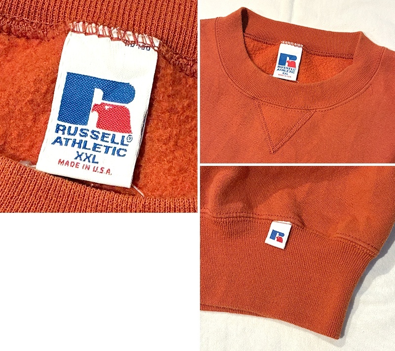 90's【USA製】【RUSSELL】ラッセル 【ビンテージ】オレンジ【無地】【クルーネック】前V スウェット【サイズXXL】