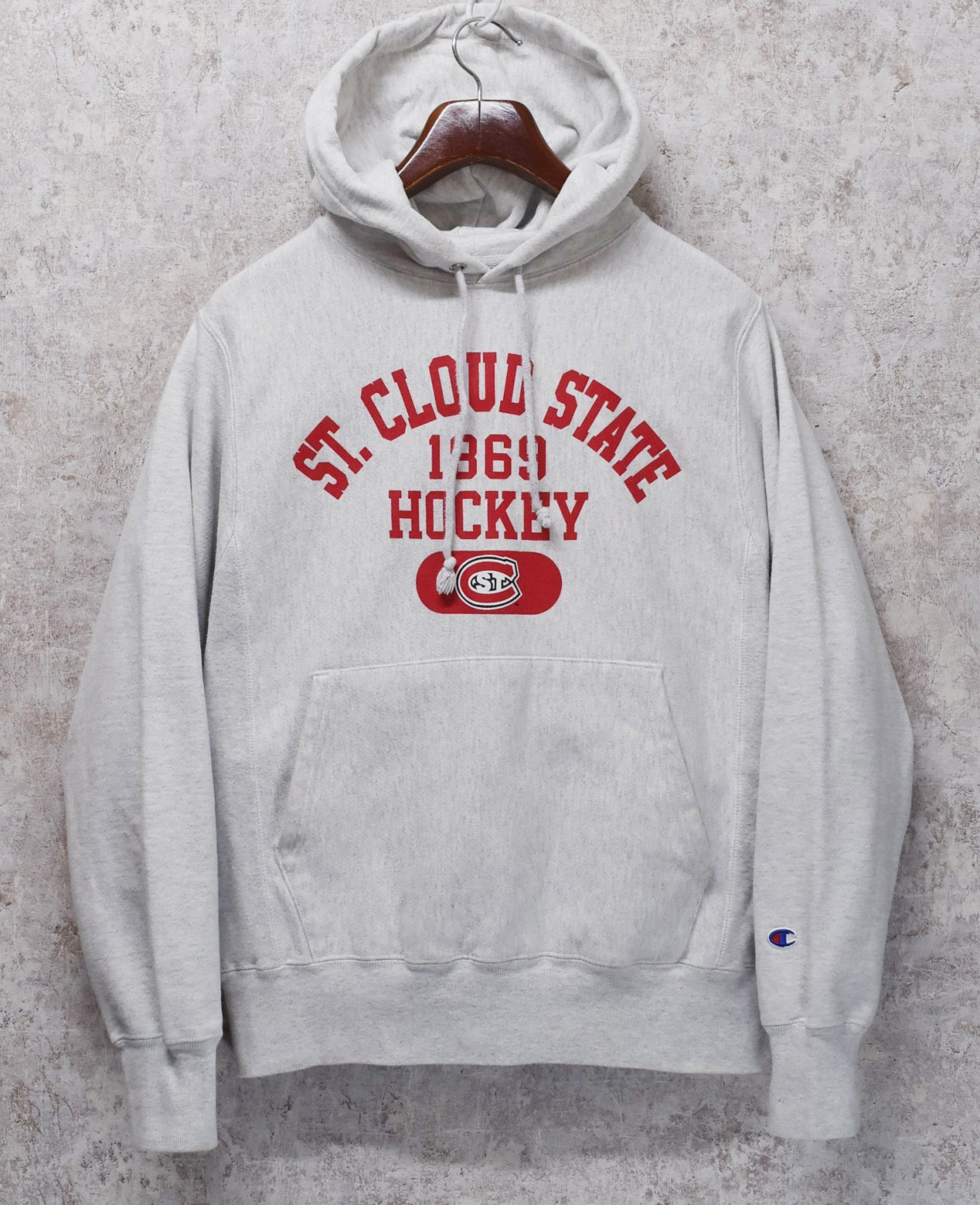 ビンテージ【チャンピオン】【Champion】グレー【ST.CLOUD STATE HOCKEY】ホッケーチーム【プリント】【リバースウィーブパーカー】【サイズS】