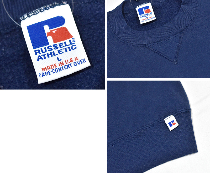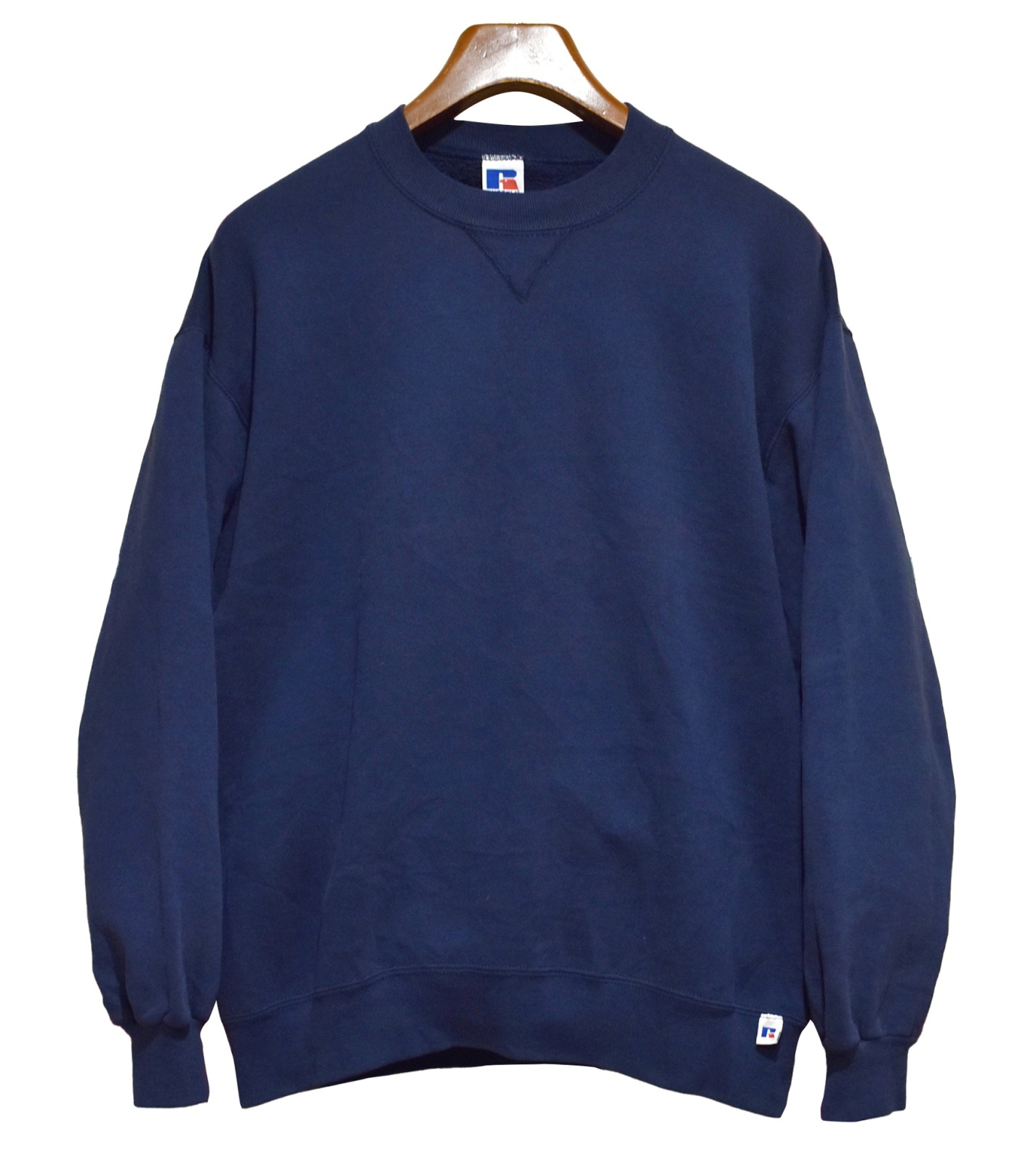 90's【USA製】【RUSSELL】ラッセル 【ビンテージ】紺【無地】ネイビー【クルーネック】前V スウェット【サイズL】