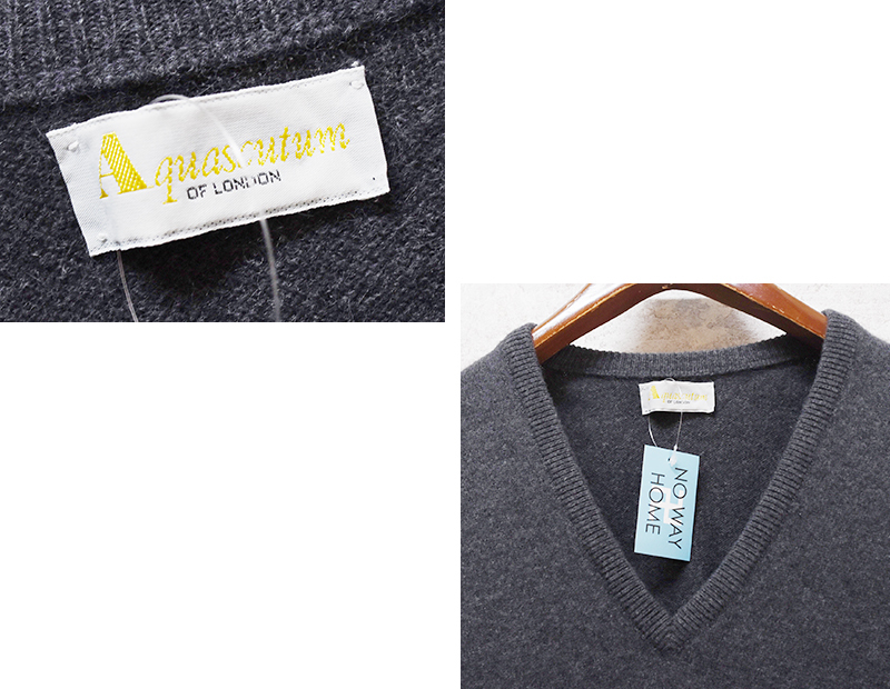 スコットランド製 ビンテージ【アクアスキュータム】チャコール Vネック【アンゴラウールベスト】【44】