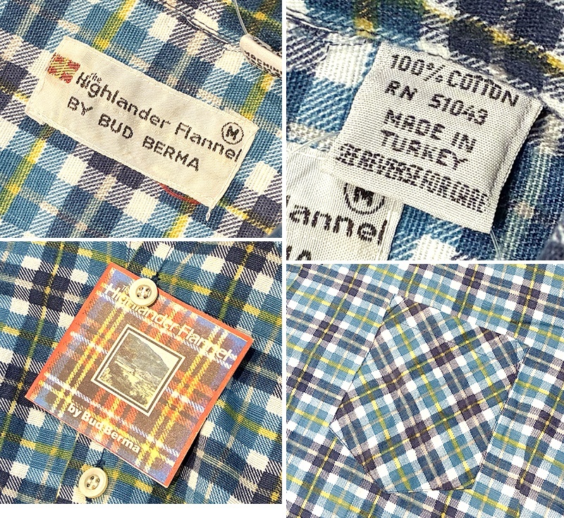 デッドストック【90's】ビンテージ【Bud Berma】青チェック ネルシャツ【サイズM】