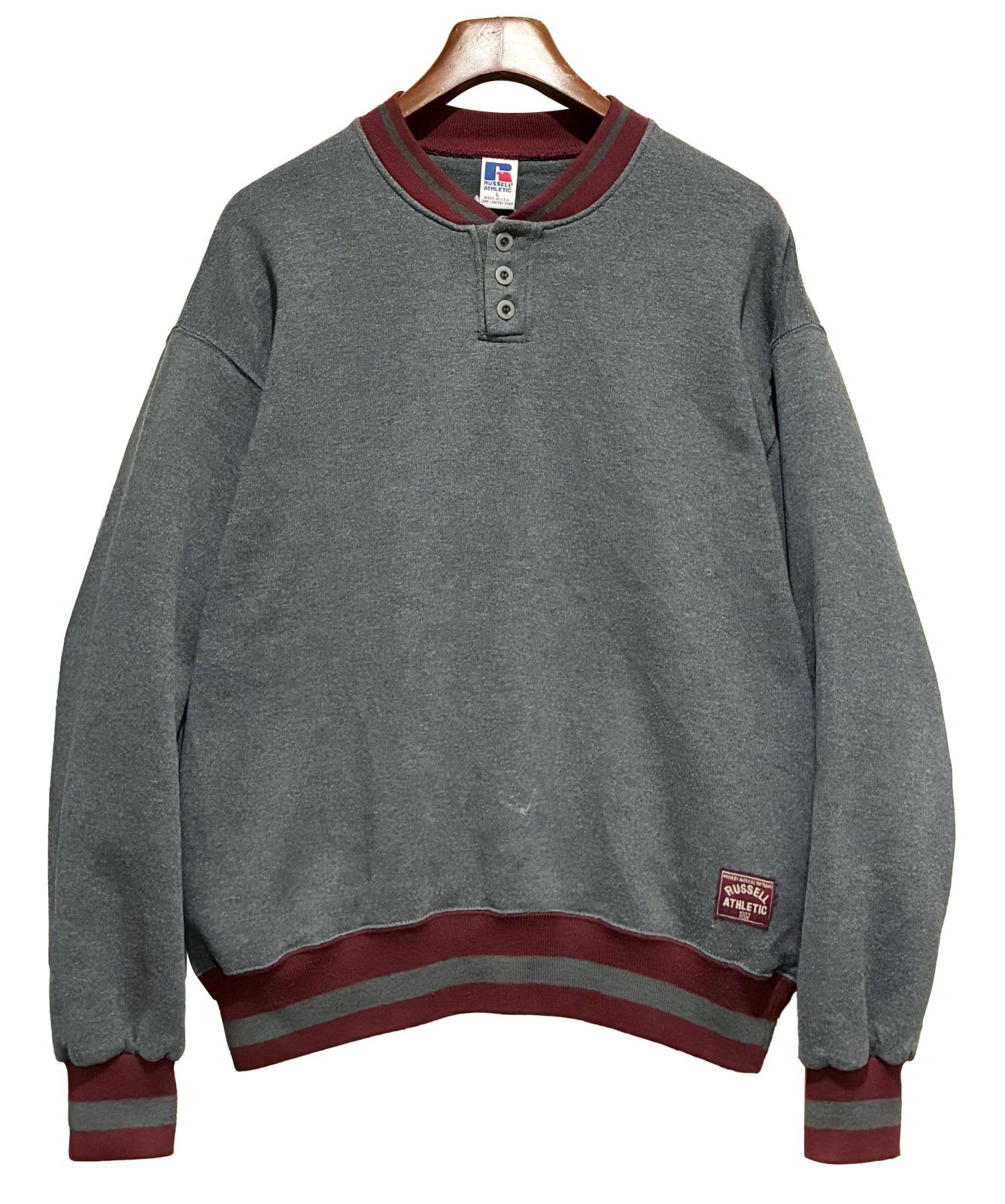 90's【USA製】【RUSSELL】ラッセル 【ビンテージ】チャコールxリブエンジライン 【ヘンリーネックスウェット】【サイズL】