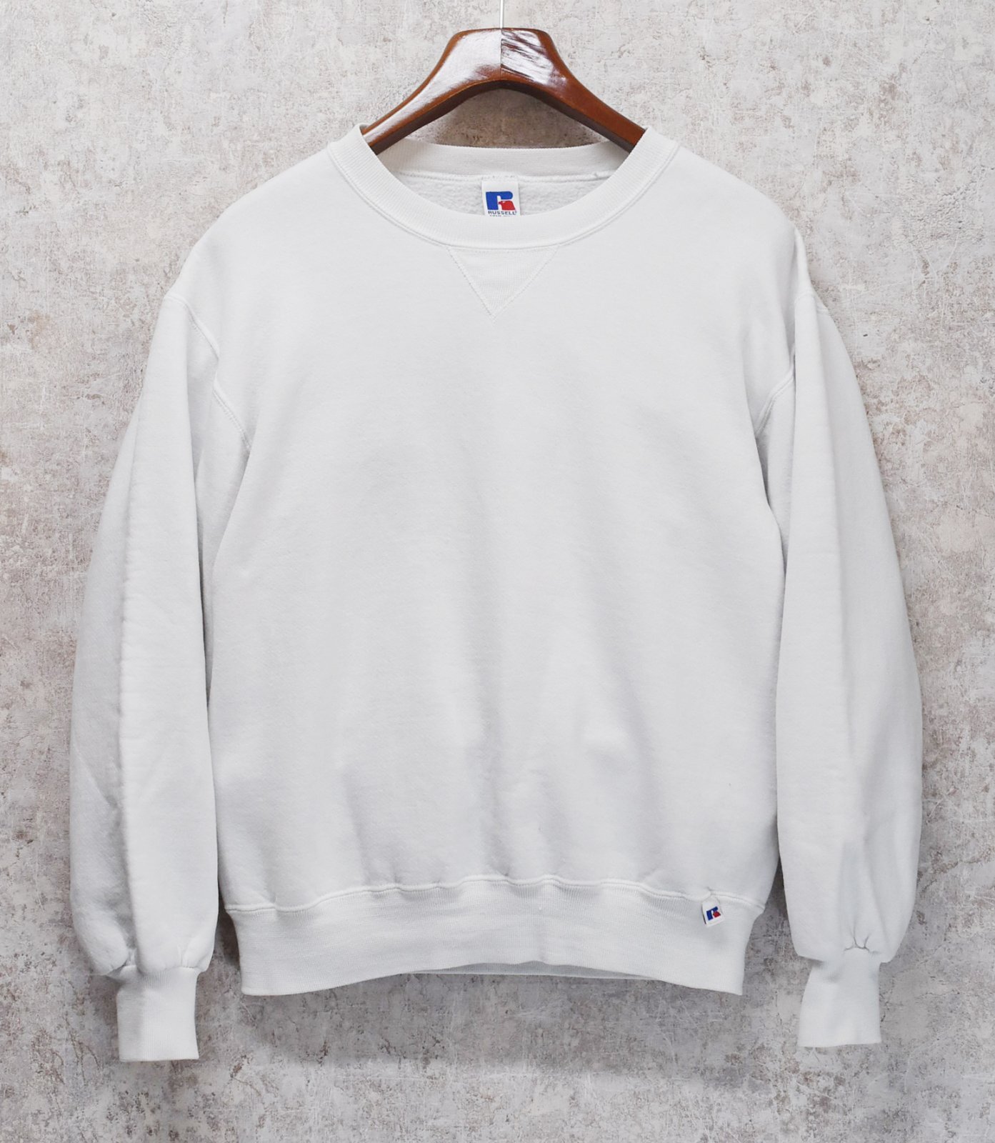 90's【USA製】【RUSSELL】ラッセル【ビンテージ】白【無地】【クルーネック】前V スウェット【サイズM】