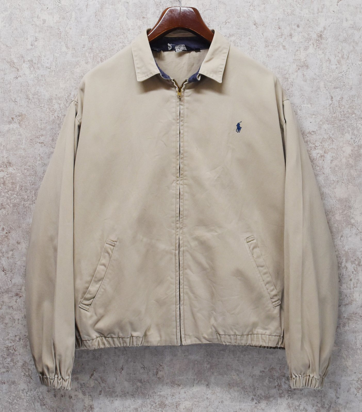 〜90's ビンテージ【ラルフローレン】【RALPH LAUREN】【ベージュ】コットン【スウィングトップ】【ジップアップブルゾン】【サイズL】