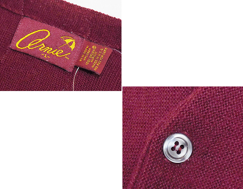 80's USA製【ビンテージ】アーニー【ARNIE】【エンジ】【アクリルカーディガン】【サイズL】