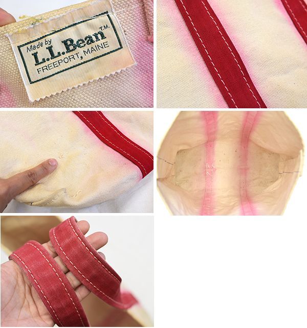 耳付き80's【ビンテージ】 【LLビーン】【L.L.bean】【キャンバス】【トートバッグ】【白×赤】【L.L.ビーン】