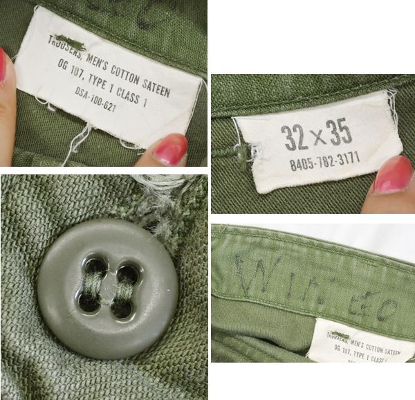 60's【米軍実物】【ビンテージ】【ベイカーパンツ】OG107【平ボタン】【ユーティリティパンツ】【32×35】