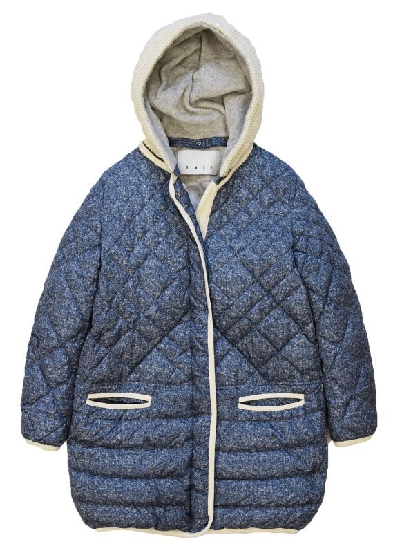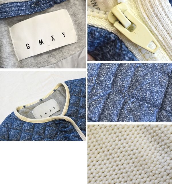 【G M X Y】【ニット×ニット柄プリント】【フード取り外し可能】中綿入り【キルティングジャケット】【サイズS】【レディース古着】