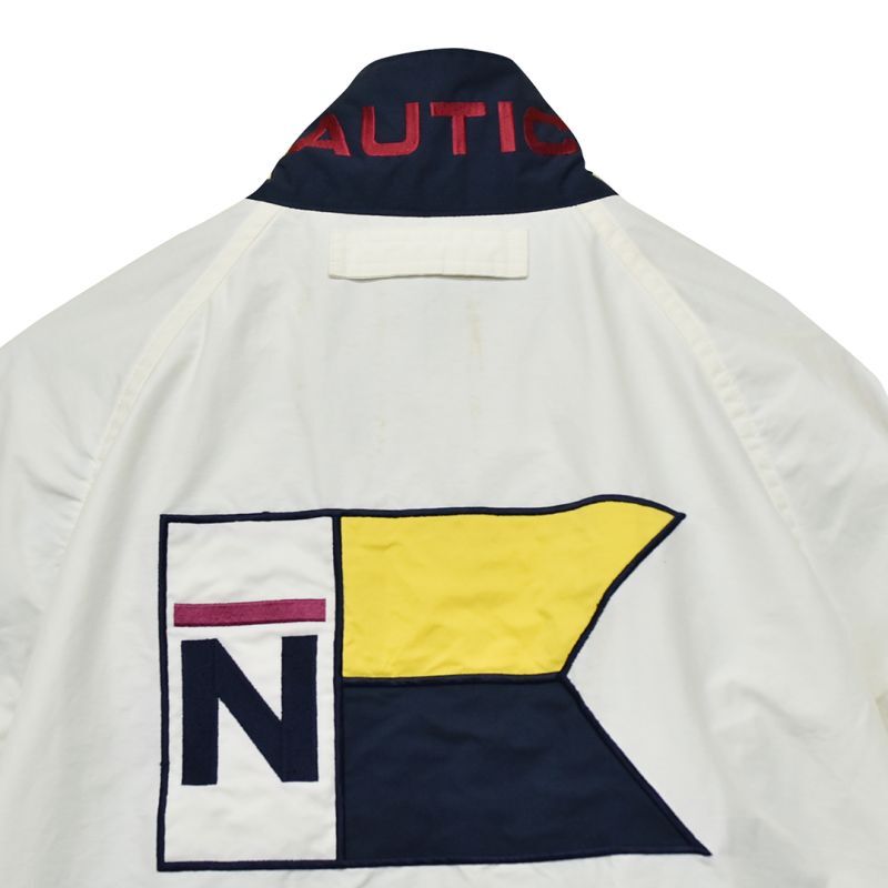 80's~【ビンテージ】【nautica】【ノーティカ】【白×紺】【ロゴ入り】【バックロゴ】【ブルゾン】【サイズM】