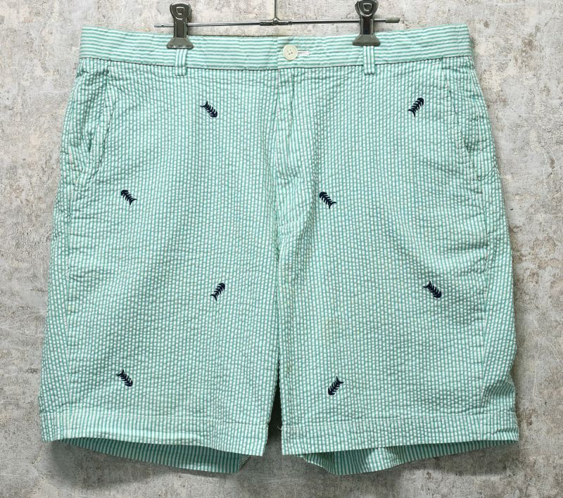 ◆商品説明◇ ブルックスブラザーズの ストライプ柄のショーツ。 生地はシアサッカー地です。 実寸を参考によろしくお願いします。 ◆サイズ◇ サイズ表記:W36 素材・材質:コットン 実寸(平置きで) ウエスト:約46×2cm 股上 :約30cm 股下 :約21cm 裾幅 :約30cm 全長 :約50cm ◆コンディション◇ 自然な色あせなど中古感がありますが、 特筆すべき大きなダメージはありません。 【ブルックスブラザーズ】【346】緑x白【シアサッカー地】【ストライプ柄】刺繡入り【コットンショートパンツ】【短パン】【W36】 [DF0805-8-40-DF11] Tweet 返品特約に関する重要事項 お問い合わせ お気に入り登録