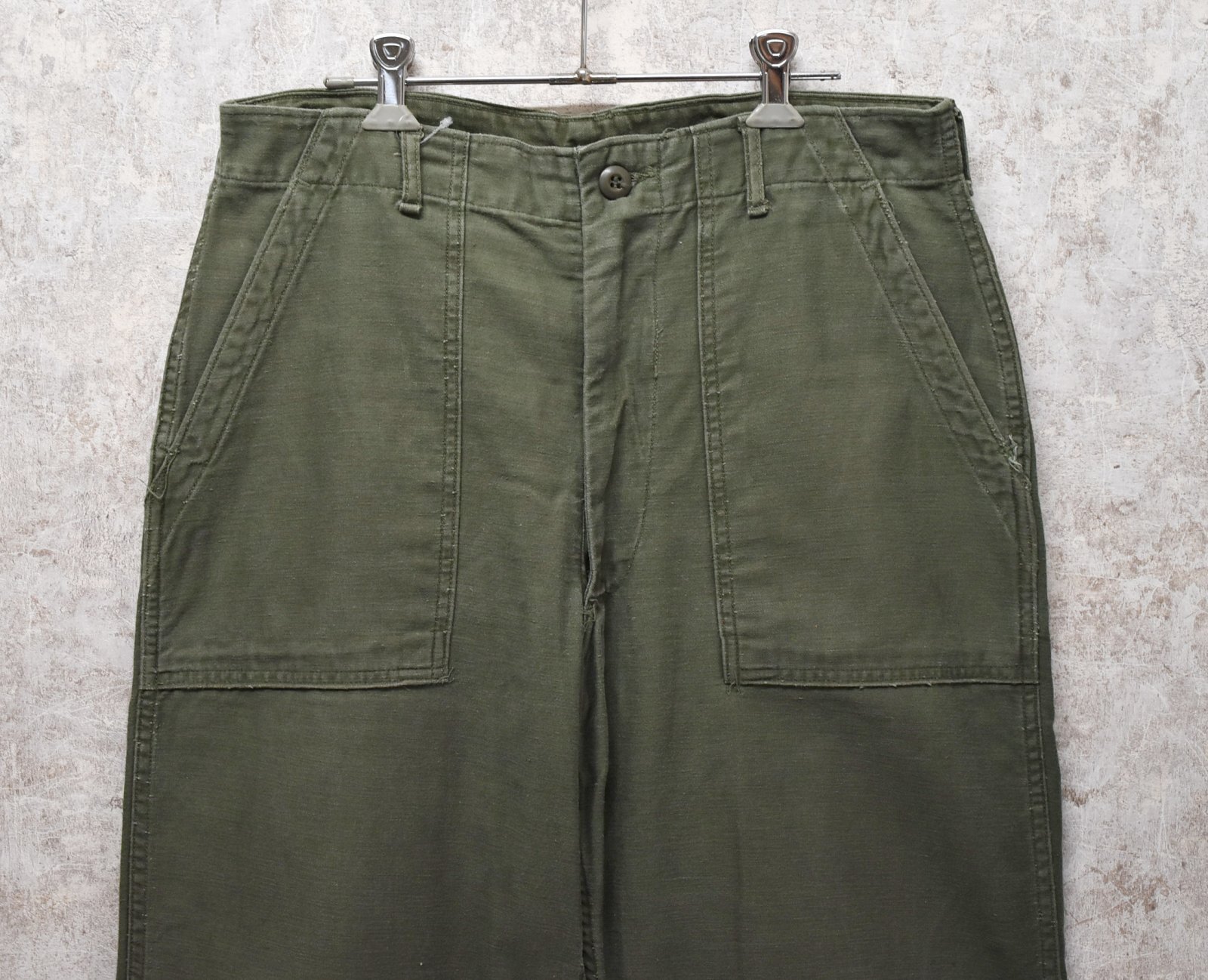 ◆商品説明◇ 60年代頃の米軍の OG107ベイカーパンツです。 おしりのセンターとアウトシームは ダブルステッチの個体です。 実寸を参考に宜しくお願いします。 ◆サイズ◇ サイズ表記:W34 素材・材質:コットン 実寸(平置きで) ウエスト:約42×2cm 股上 :約34cm 股下 :約67.5cm 裾幅 :約24cm 全長 :約98cm ◆コンディション◇ 自然な色褪せや細かな汚れなど 中古感がありますが、 その他、特筆すべき大きなダメージはありません。 【60's∼】【米軍実物】U.S.ARMY【ビンテージ】OG107【ベイカーパンツ】【ダブルステッチ】UFOボタン【ユーティリティパンツ】【W33程度】 [DH0505-25-DI07] Tweet 返品特約に関する重要事項 お問い合わせ お気に入り登録