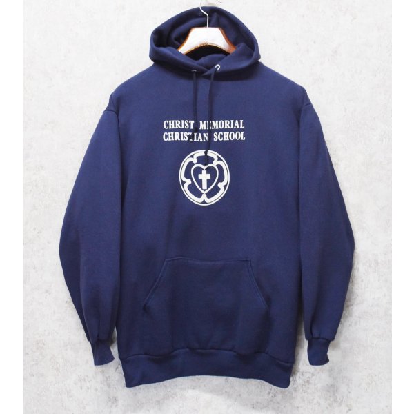 80's~【USA製】JERZEES ジャージーズ【ビンテージ】【CHRIST MEMORIAL】【紺】パーカー【サイズXL】