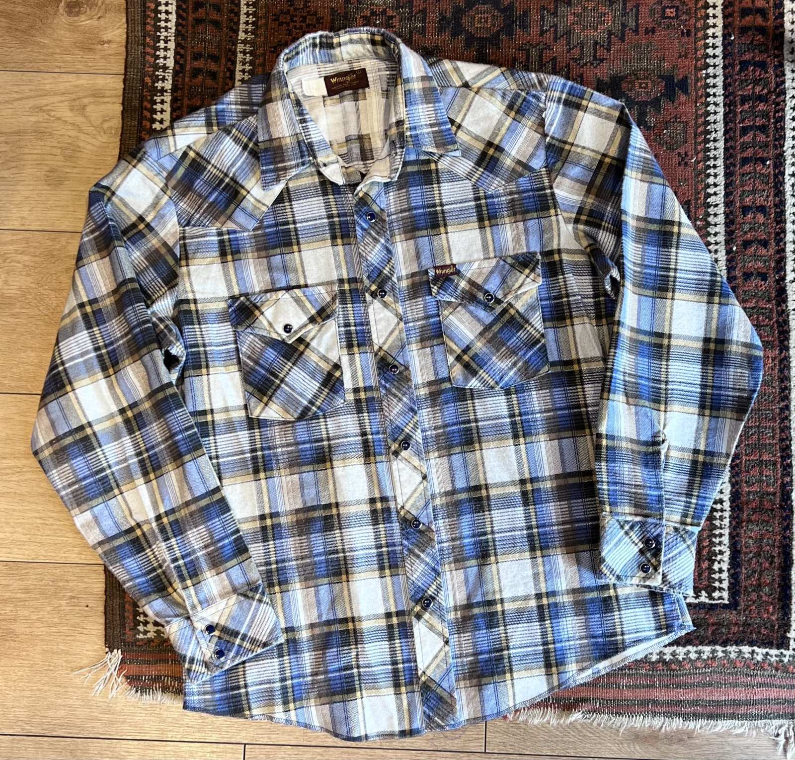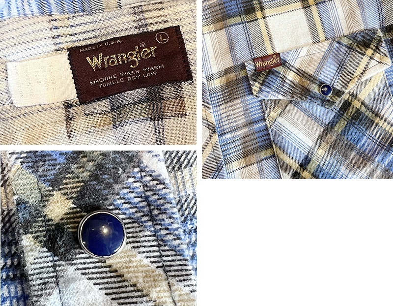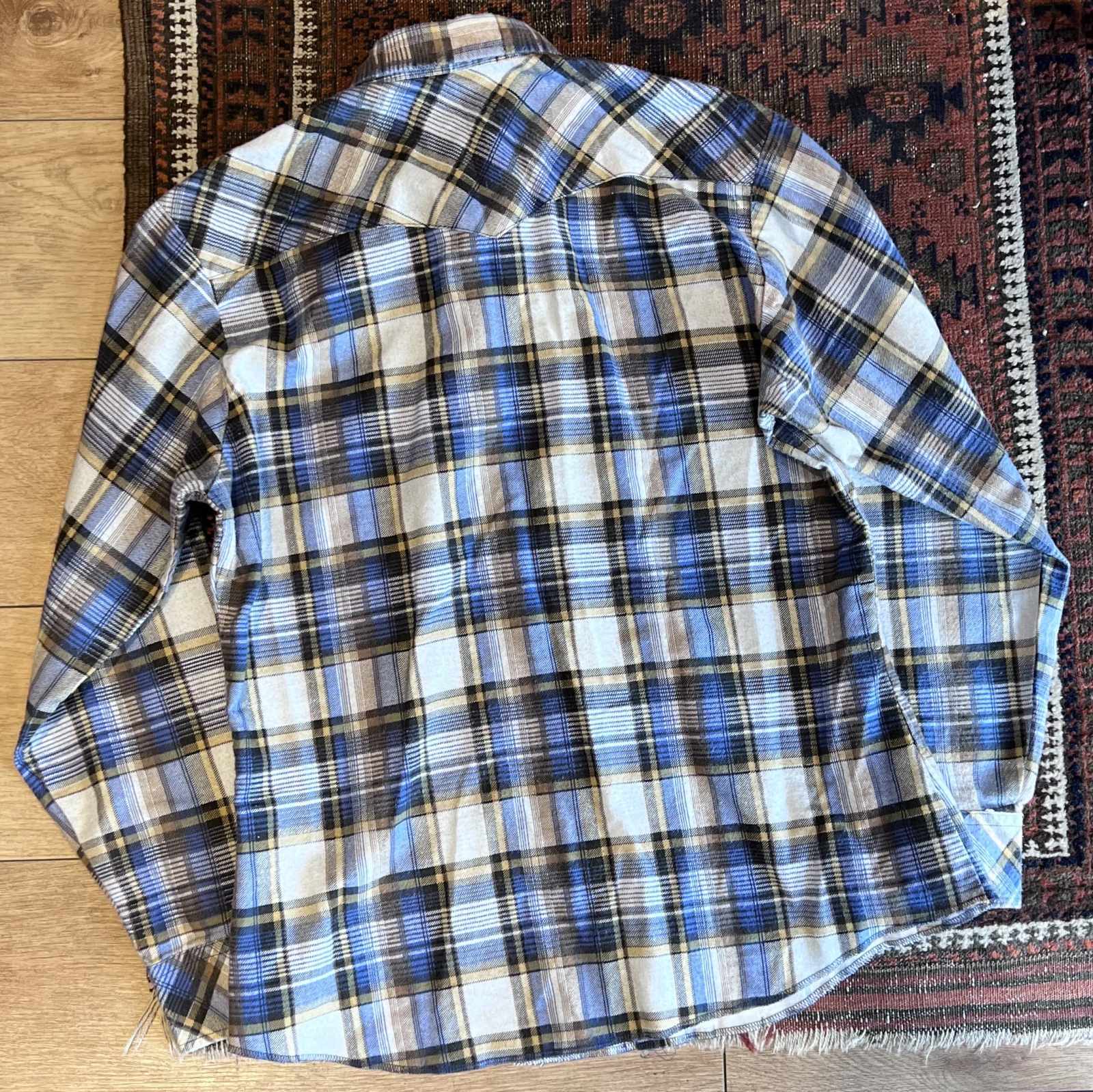 ◆商品説明◇ 70年代頃の ラングラーのウエスタンシャツ。 USA製。 身幅が少し絞られたデザインです。 実寸を参考に、是非よろしくお願いします。 ◆サイズ◇ サイズ表記:L 素材・材質:コットン 実寸(平置きで) 肩幅(肩〜肩) :約48cm 身幅(脇下〜脇下):約58cm 袖丈(肩〜袖先) :約62cm 着丈(襟下〜裾) :約74cm ◆コンディション◇ 自然な色褪せなど多少の中古感はありますが、 特筆すべきダメージはありません。 70's~【USA製】【Wrangler】ラングラー【ビンテージ】【青×黄×茶チェック】【ウエスタンシャツ】コットンシャツ【サイズL】 [EI0605-6-EI20-Y] Tweet 返品特約に関する重要事項 お問い合わせ お気に入り登録