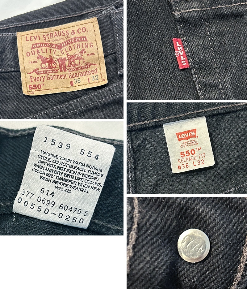 90’s 【メキシコ製】【ビンテージ】【LEVI'S】【リーバイス550】550 黒 デニムパンツ ブラックデニム【36x32】