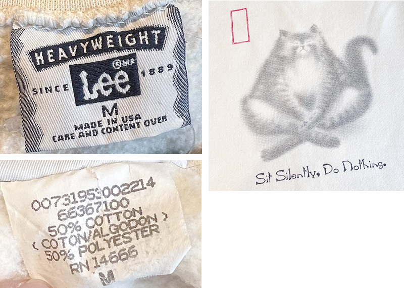 90's【USA製】ビンテージ【LEE】【リー】【猫】ねこ【Sit Sitetly Do Nothing】【スウェット】【サイズL】