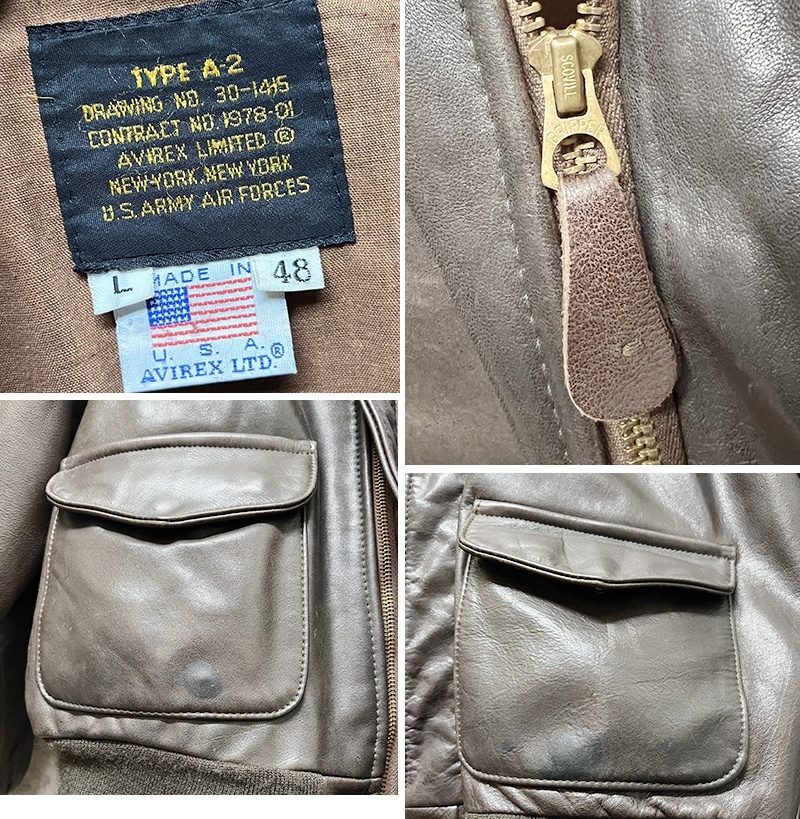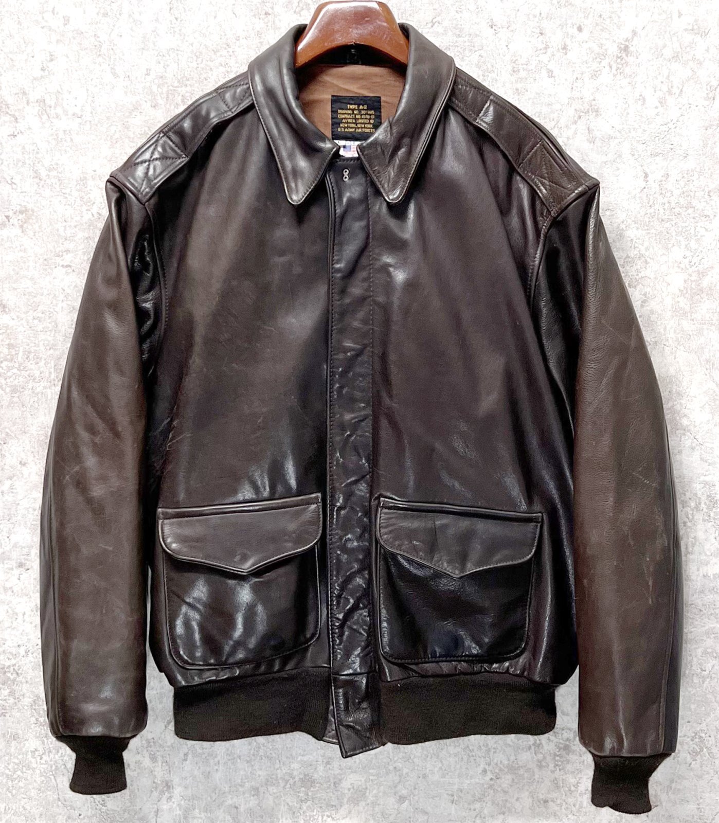 ~90's【USA製】ビンテージ【AVIREX】アヴィレックス【ブラウン】【A-2タイプ】【レザージャケット】XL程度【US48】
