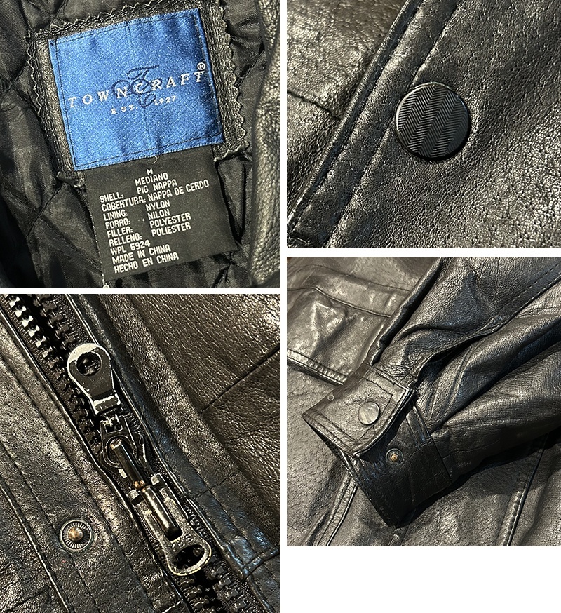 【ビンテージ】【TOWN CRAFT】タウンクラフト【黒】中綿入り【レザージャケット】【サイズM】