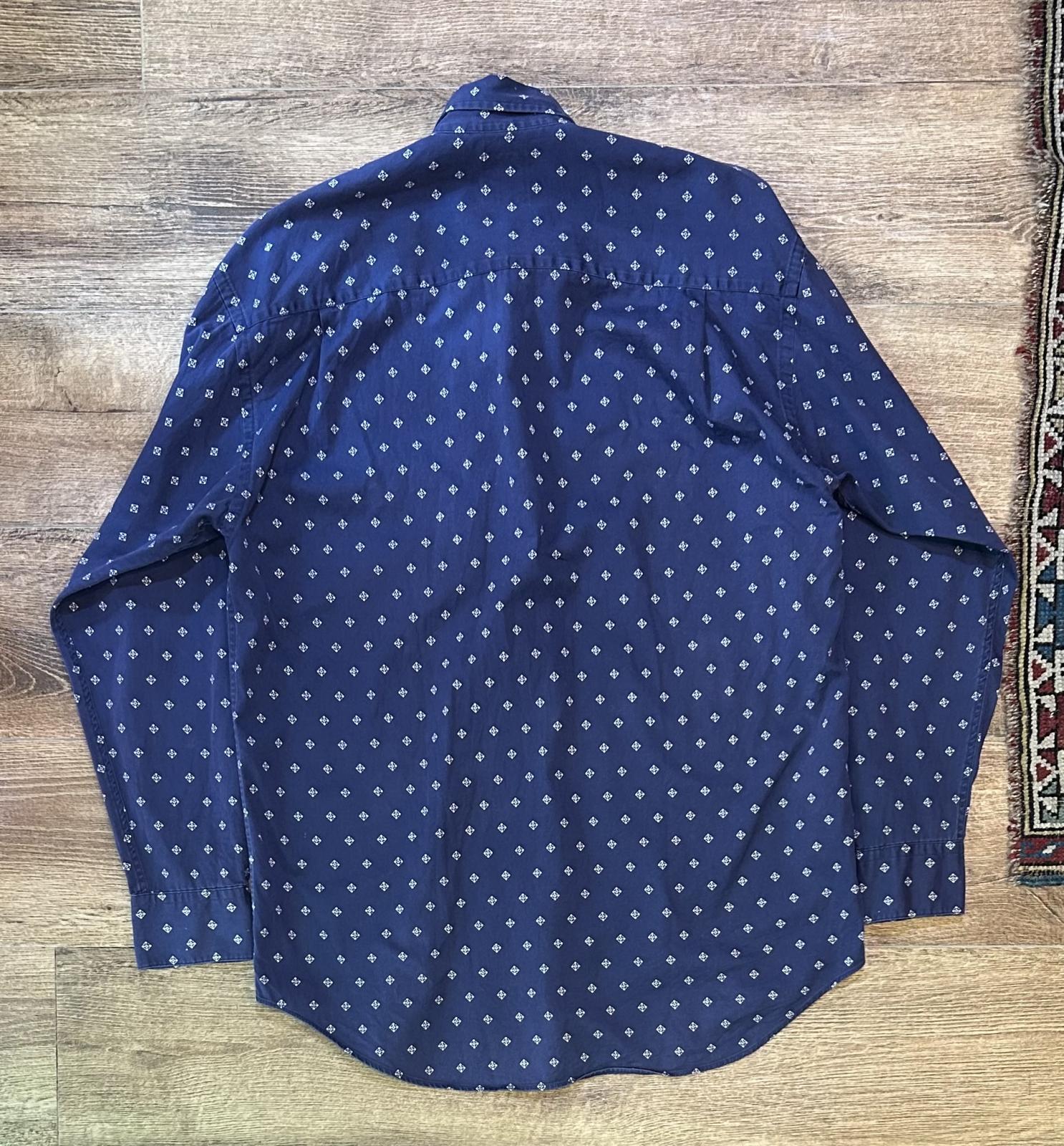 90's【ビンテージ】【オールドギャップ】【GAP】【紺×白模様】【コットンボタンダウンシャツ】【サイズM】