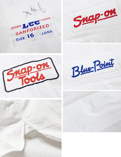 50's ビンテージ 【Lee】リー【白】Snap on tools【HBT生地】マチ付き【ワークシャツ】HBTシャツ【サイズ16 Long】