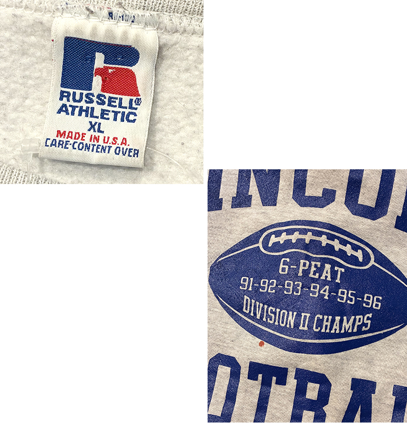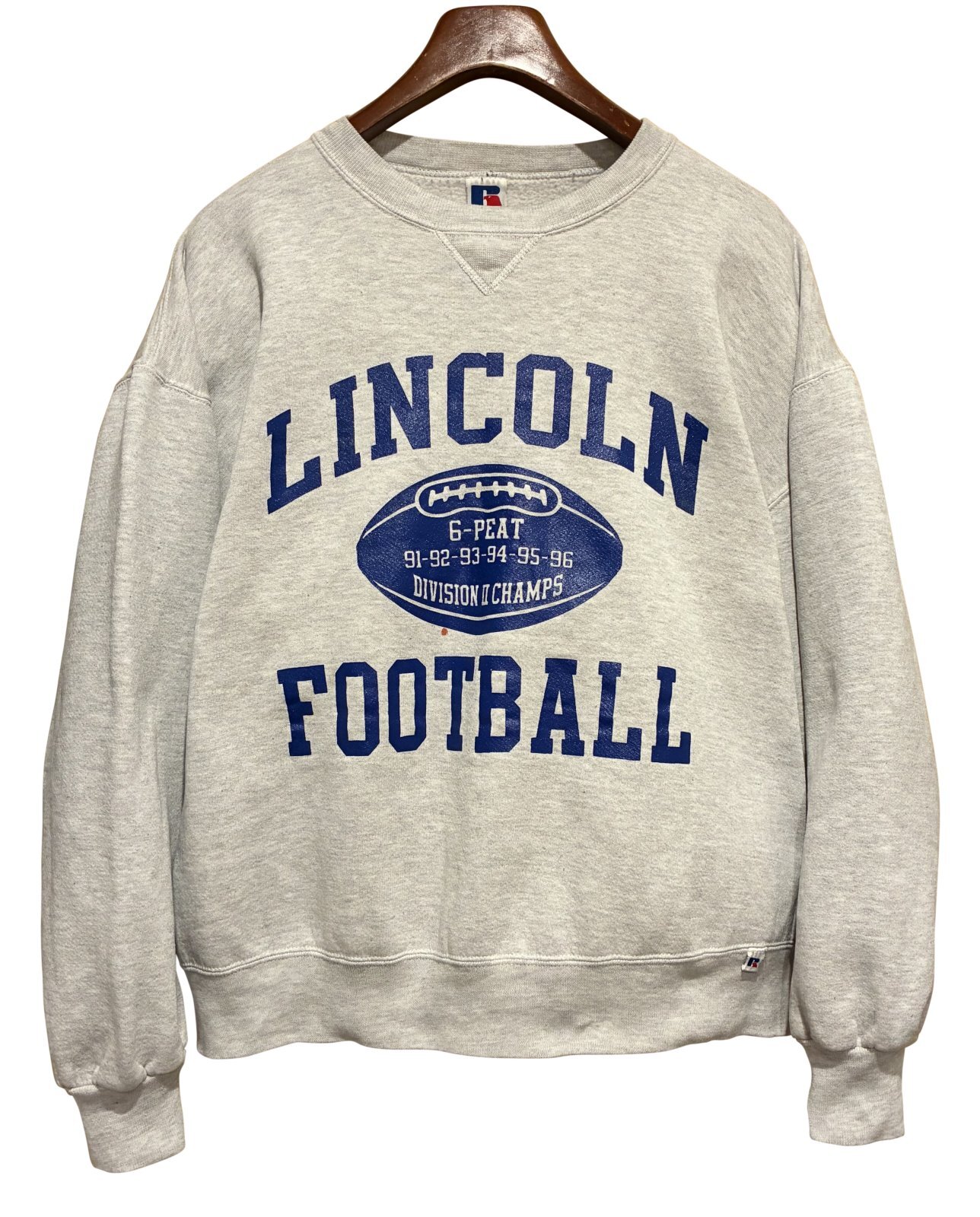 90's【USA製】【ビンテージ】RUSSELL【ラッセル】LINCOLIN FOOTBALL グレー【スウェット】【サイズL】