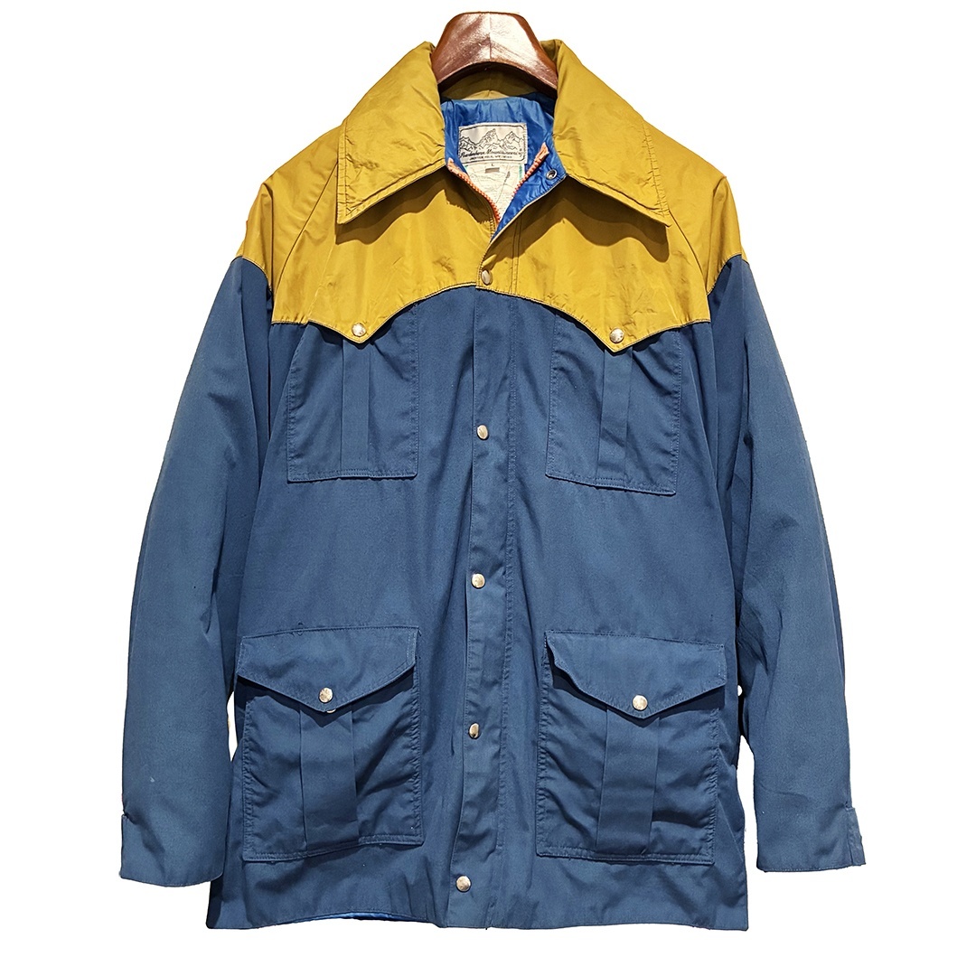 【USA製】【Powderhorn】パウダーホーン【青xマスタード】ベルト付き【ナイロンマウンテンパーカー】【サイズL】