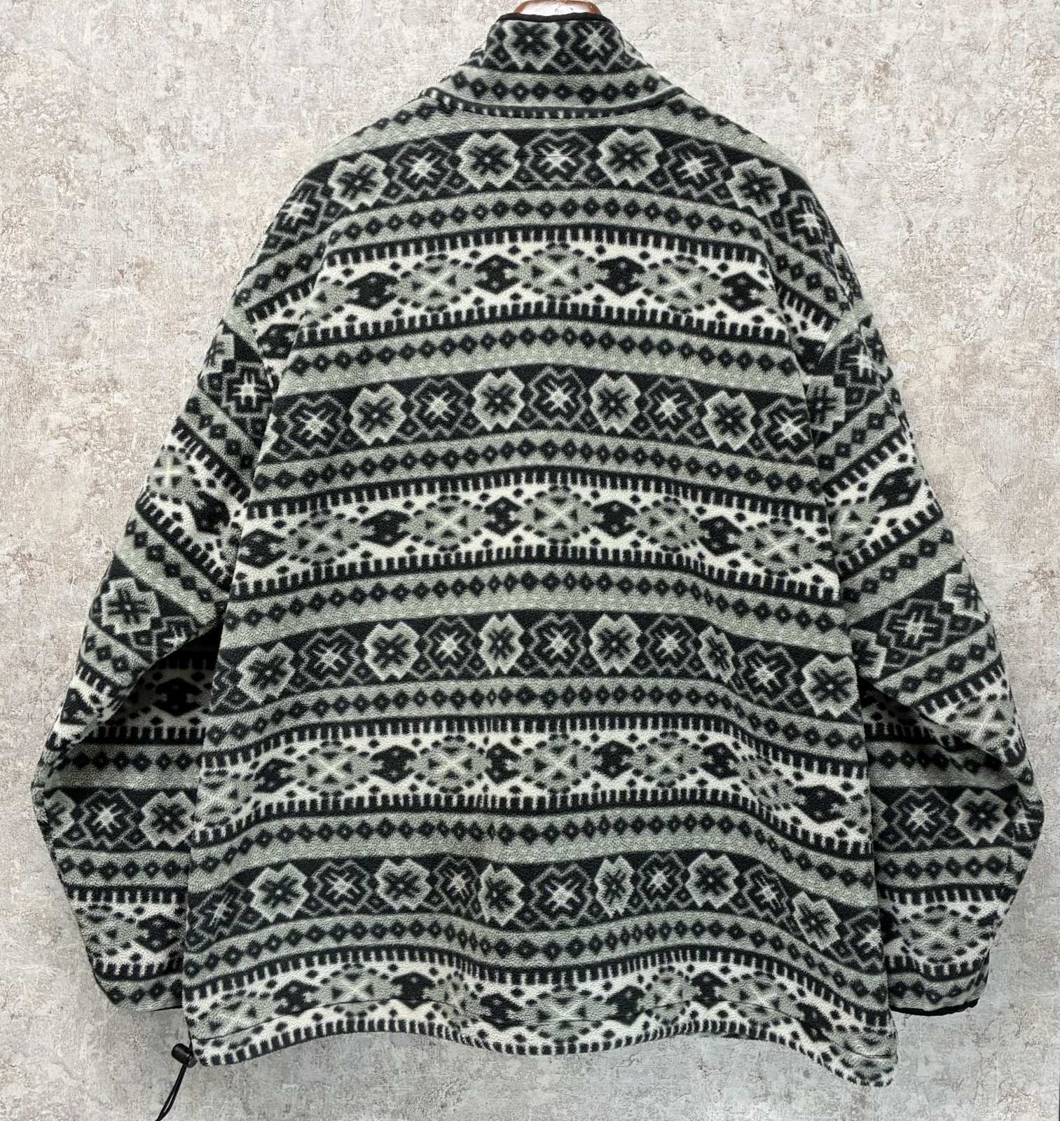 90's 【L.L.Bean】ビンテージ【LLビーン】【WINDBLOCK SERIES】 ポーラテック グレー 【雪柄】総柄【ハーフジップフリース】アノラックフリース サイズXL程度