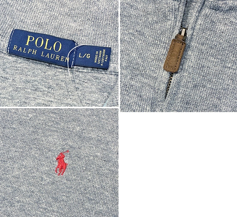 ビンテージ【ラルフローレン】POLO RALPH LAUREN【グレー】【無地】【ハーフジップ】【コットンセーター】【サイズL】