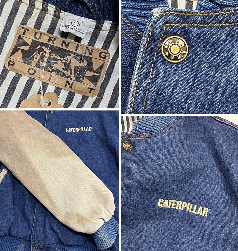 【ビンテージ】【TURNING POINT】ターニングポイント CATERPILLAR【キャタピラー】デニムxベージュ 袖切替【スタジャン】【サイズL】