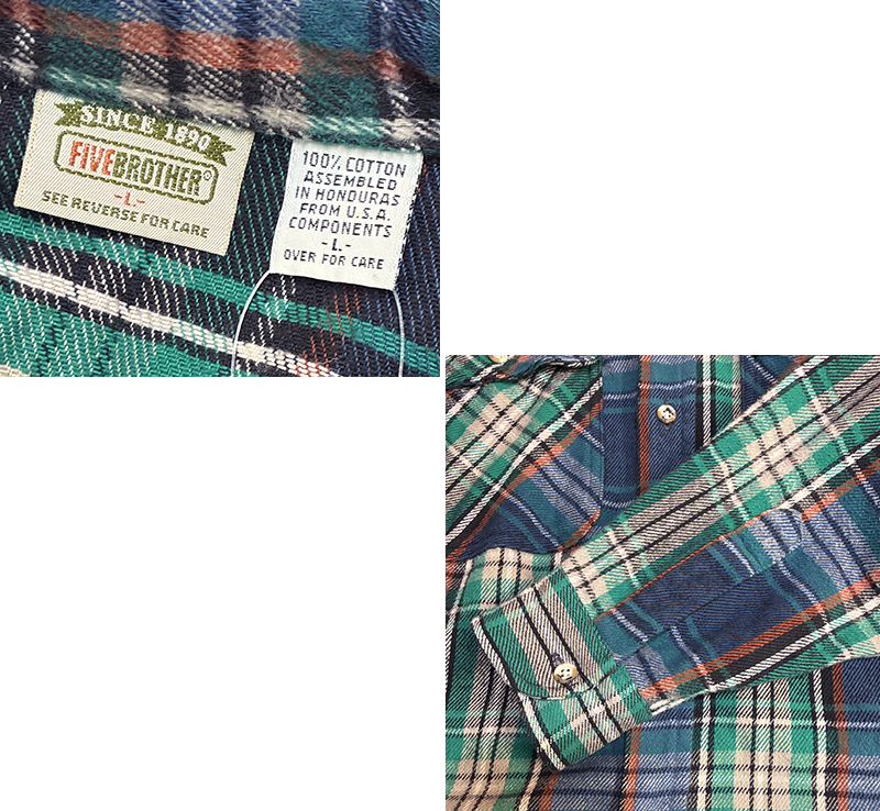 90's 【ビンテージ】 【FIVEBROTHER】ファイブブラザー【紺x緑x赤】チェック ネルシャツ サイズL