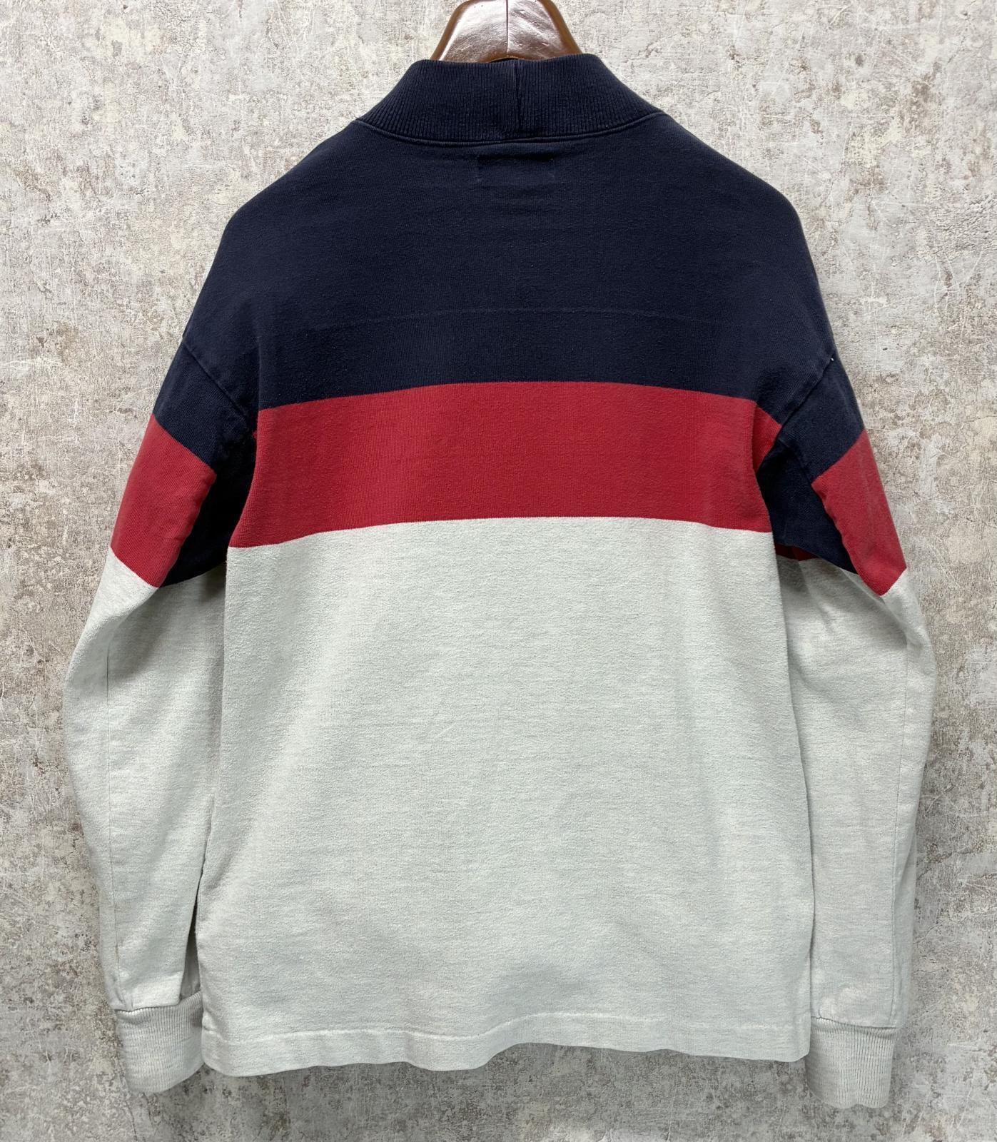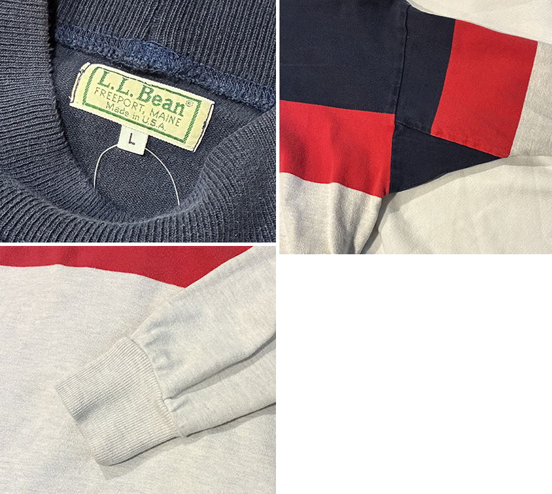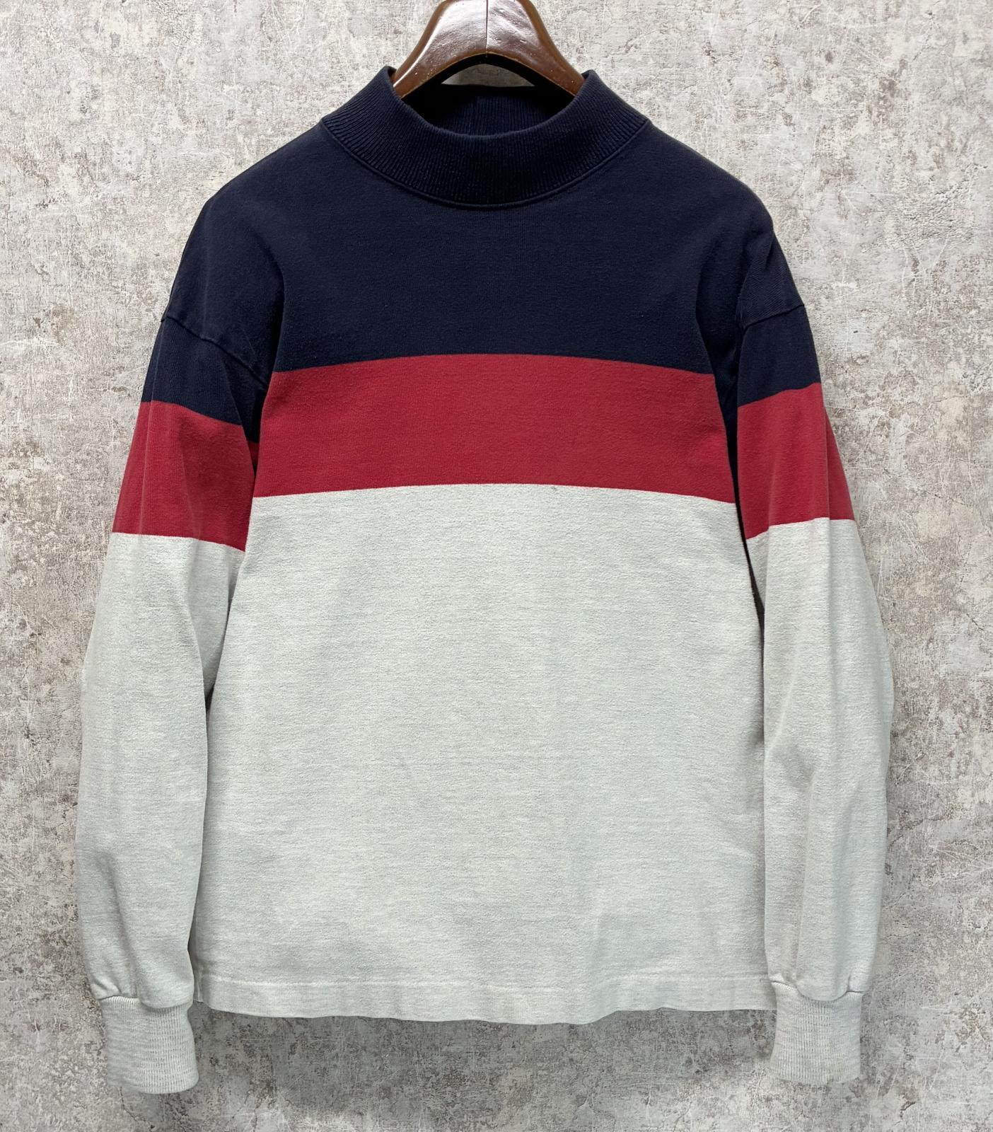 90's【USA製】ビンテージ【L.L.Bean】LLビーン【紺×赤xグレー】【モックネック】ロンT【サイズL】