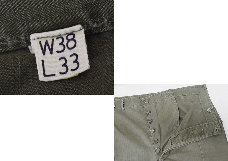 ◆商品説明◇ 40年代頃の米軍の M-43HBTパンツ。 13スターボタンのアイテムです。 実寸を参考に是非宜しくお願いします。 ◆サイズ◇ サイズ表記:38×33 素材・材質:コットン 実寸(平置きで) ウエスト:約47×2cm 股上 :約44cm 股下 :約81cm 裾幅 :約25cm 全長 :約113cm ◆コンディション◇ 左ひざにリペア跡があります(画像参照)。 自然な色あせや細かい汚れなど 多少の中古感はありますが、 特筆すべき大きなダメージはありません。 【40s】【ビンテージ】米軍実物【U.S.ARMY】【M-43】【HBTパンツ】【フィールドパンツ】【38x33】 [EJ2659-12-EK30-H] Tweet 返品特約に関する重要事項 お問い合わせ お気に入り登録