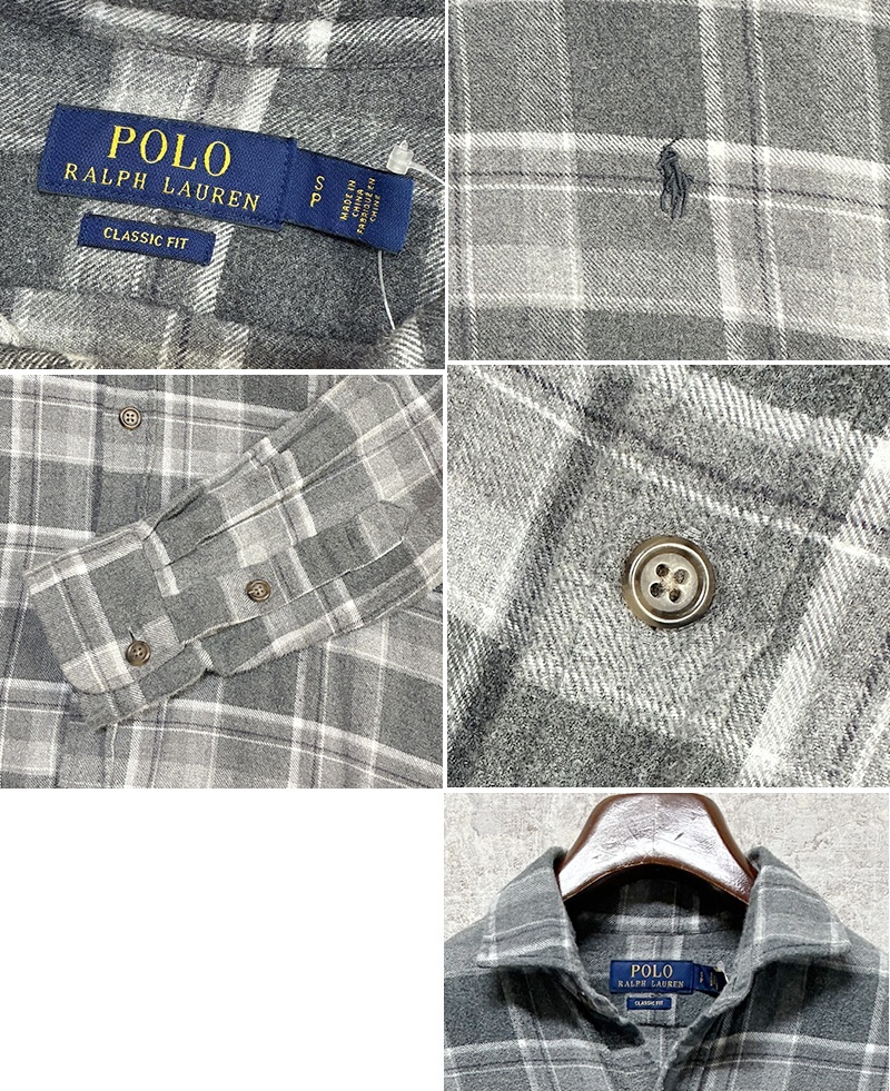 ビンテージ【POLO RALPH LAUREN】ラルフローレン【classic fit】 グレー チェック【ネルシャツ】コットンシャツ 【サイズS】