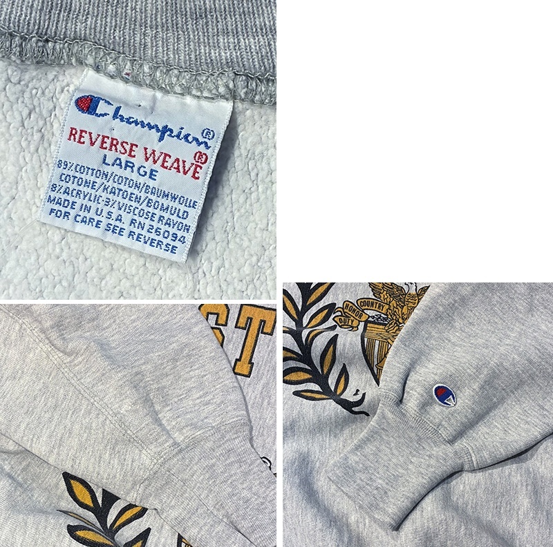 90’s【USA製】ビンテージ【Champion】【チャンピオン】【リバースウィーブ】【USMA】WEST POINT【ウェストポイント】【グレー】スウェット【サイズL】