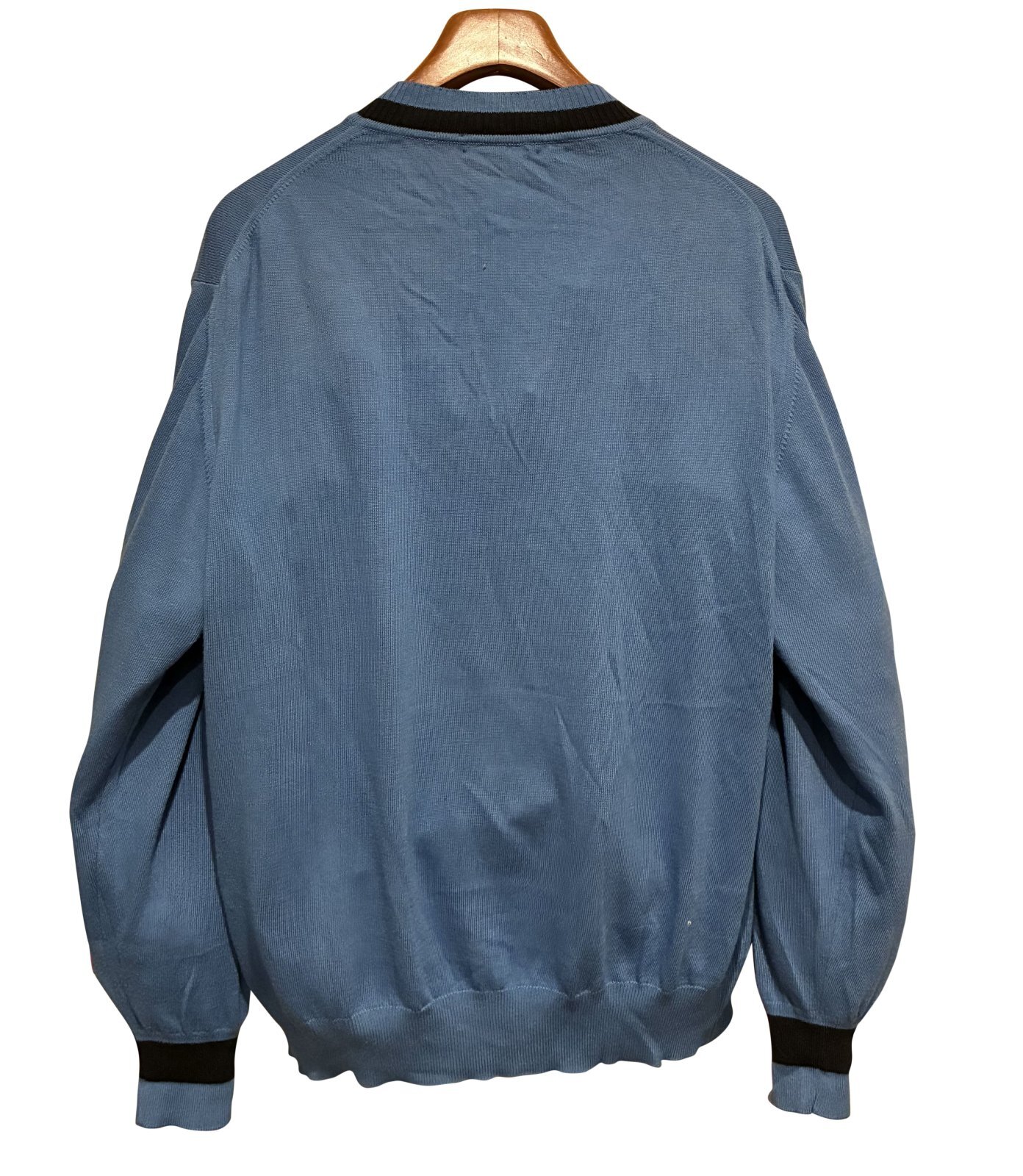 90's【イタリー製】ビンテージ【PRONTO UOMO】プロントウォモ【青x紺ライン】コットンxレーヨン Vネックセーター 【サイズL】