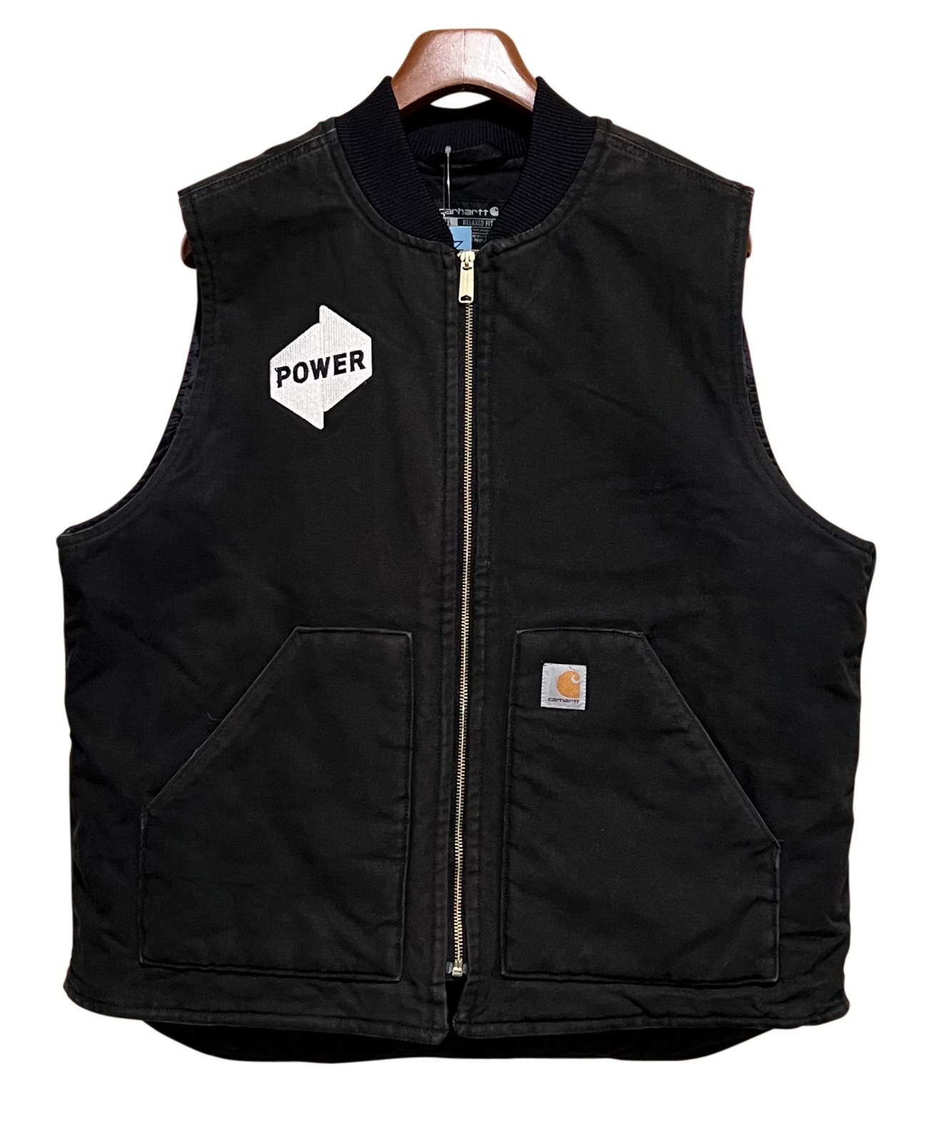 carhartt【カーハート】【中綿入り】ダック地【黒】ワッペン付き【ベスト】【サイズXL-R】