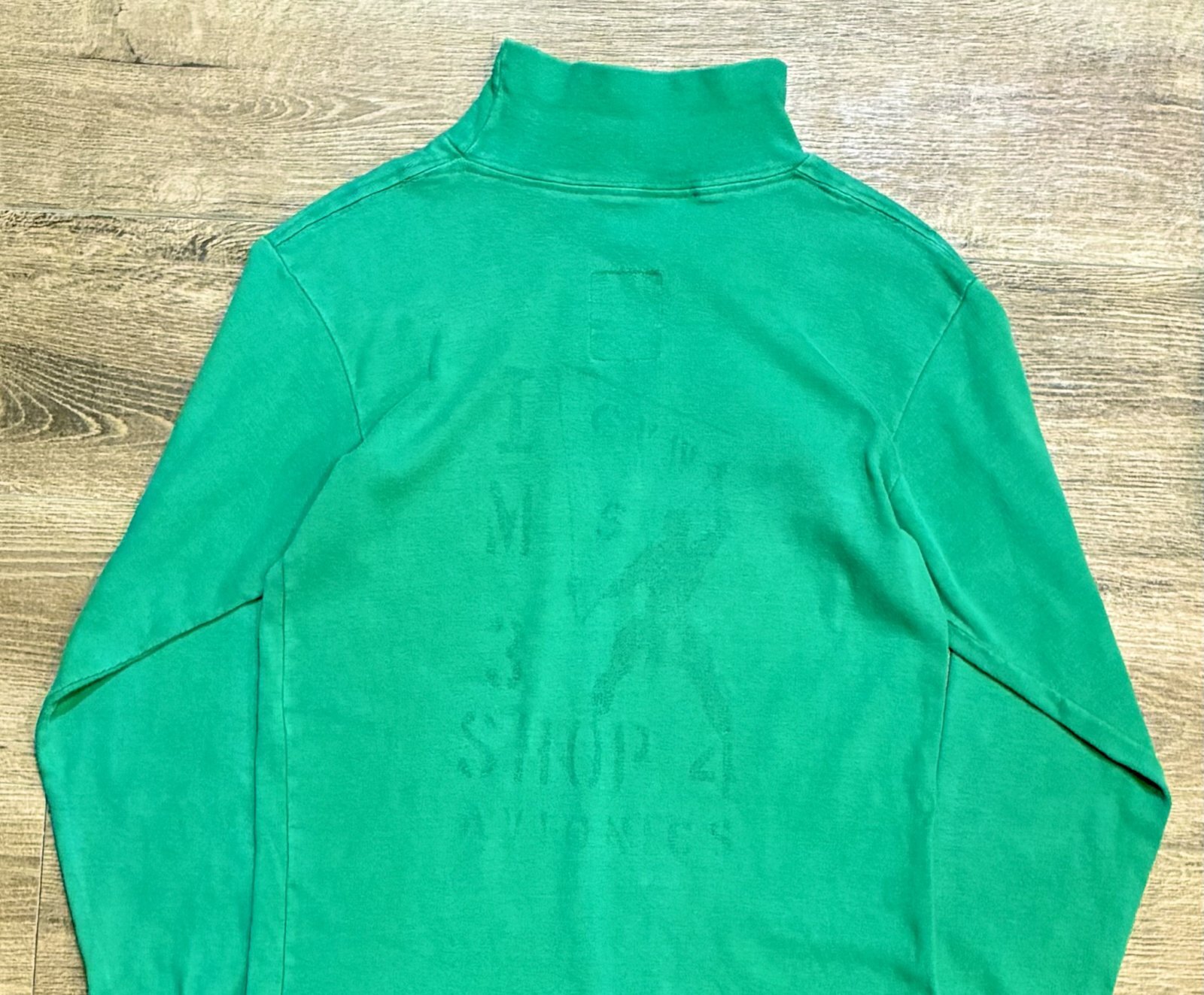 70's【米軍実物】【ビンテージ】【U.S.NAVY】【緑】【ステンシル入り】【デッキクルーシャツ】【サイズL】