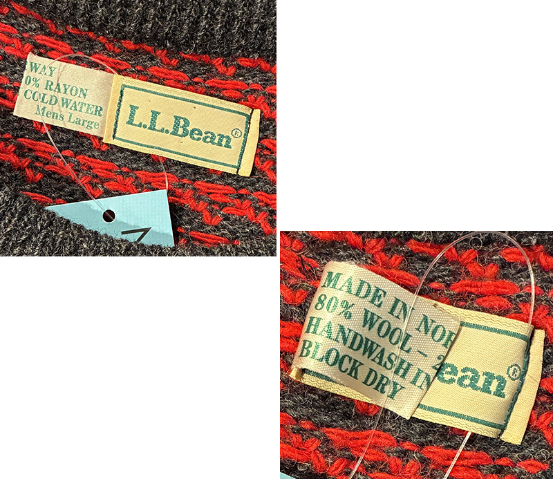 ◆商品説明◇ 80’s頃のLLビーンのセーター。 ノルウェー製です。 チャコール×赤のバーズアイ模様のアイテム。 実寸を参考に、是非よろしくお願いします。 ◆サイズ◇ サイズ表記:L 素材・材質:ウール、レーヨン 実寸(平置きで) 肩幅(肩〜肩) :約50cm 身幅(脇下〜脇下):約65cm 袖丈(肩〜袖先) :約70cm 着丈(襟下〜裾) :約66cm ◆コンディション◇ 自然な毛羽立ちや毛玉など 多少の中古感があります。 特筆すべきダメージはありません。 80’s ノルウェー製【L.L.Bean】【LLビーン】【バーズアイ】【チャコール×赤】【ウールニットセーター】【サイズL】 [EJ1903-10-EL16-HY] Tweet 返品特約に関する重要事項 お問い合わせ お気に入り登録