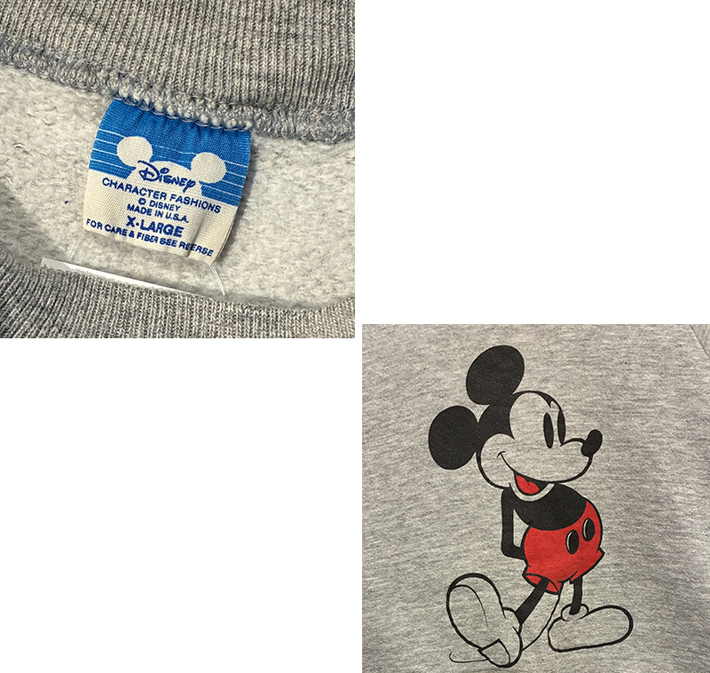 80's〜【USA製】【ビンテージ】ウォルトディズニー【ミッキーマウス】グレー【スウェット】【サイズXL】