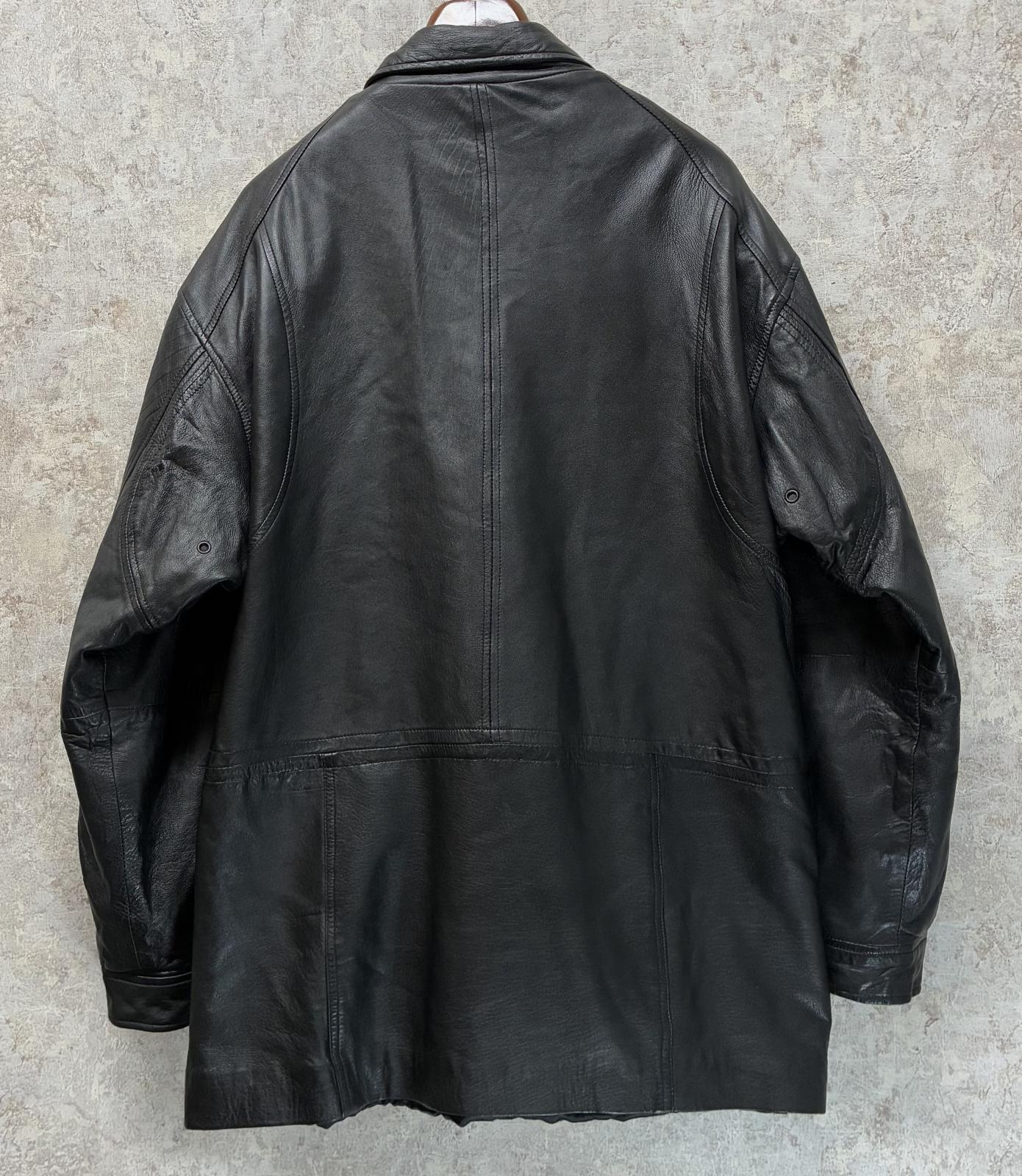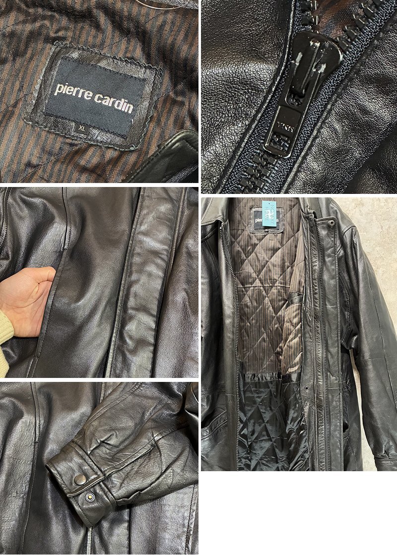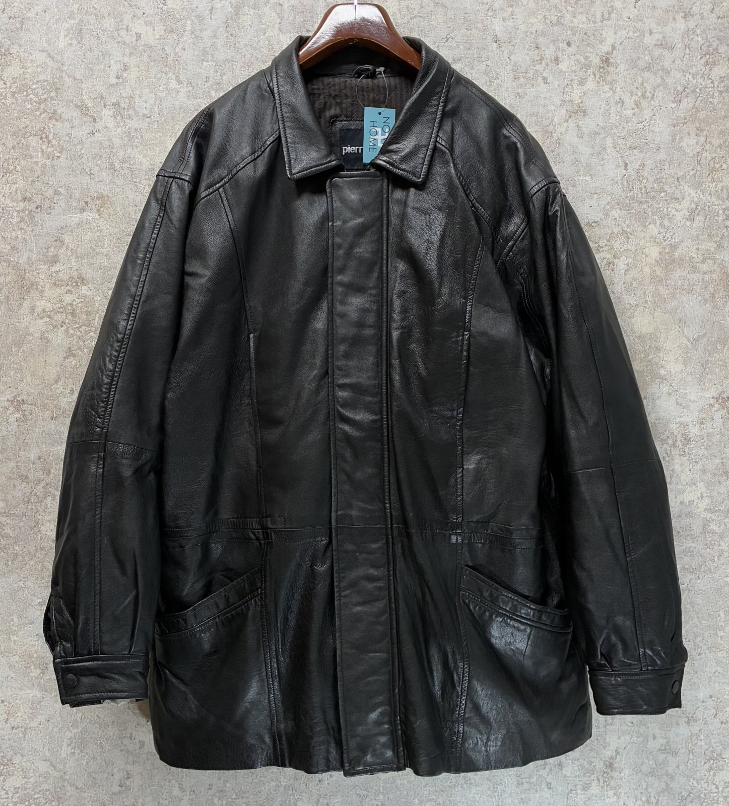 【ビンテージ】【pierre cardin】ピエールカルダン 比翼仕立て キルティング裏地【黒】【レザージャケット】【サイズXL】