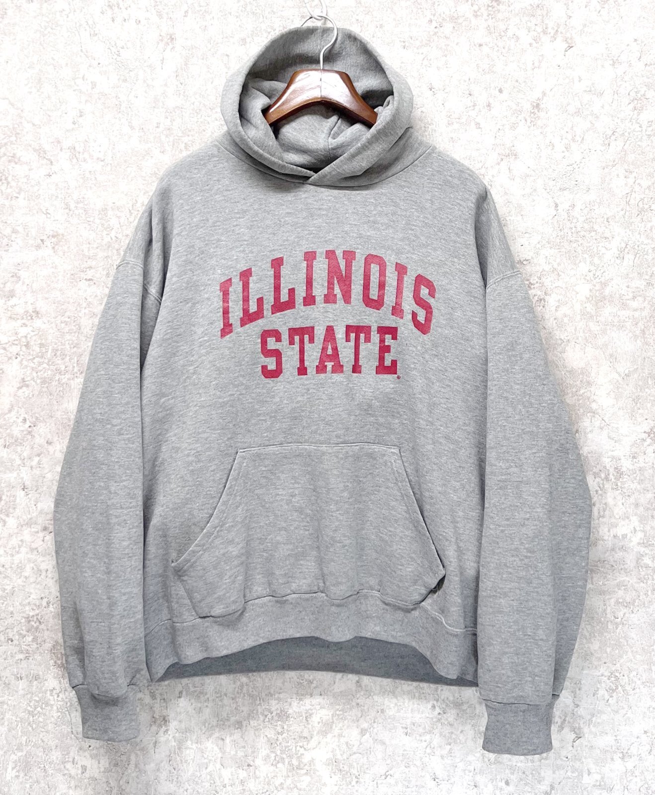 90's~ メキシコ製 【ラッセル】【ビンテージ】【グレー】ILLINOIS STATE【イリノイ州立大学】【カレッジロゴ】パーカー【サイズXL】