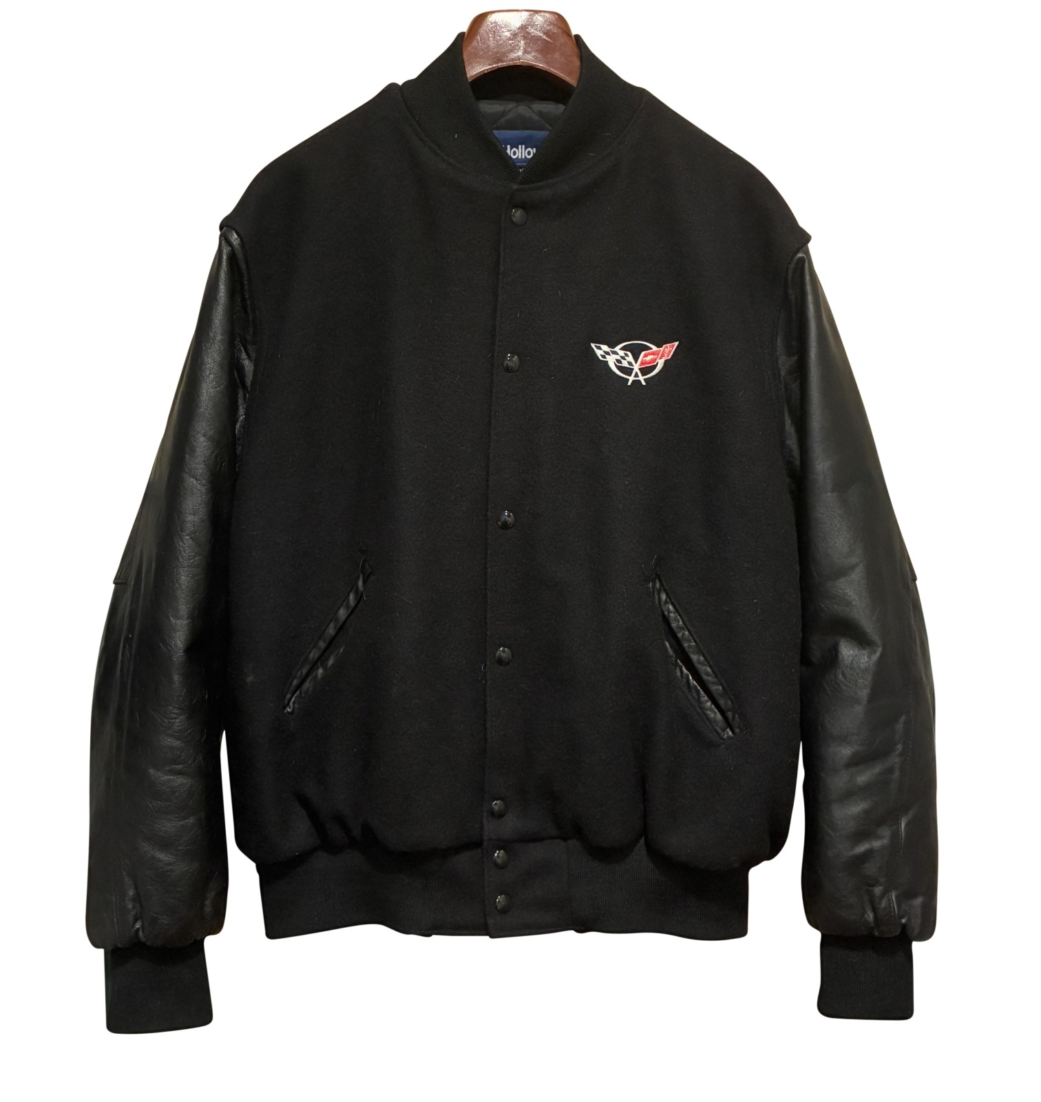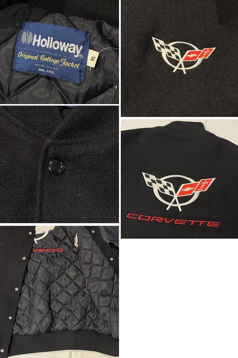 90's【USA製】【ビンテージ】【HOLLOWAY】【ホロウェイ】コルベッツ【オールブラック】 黒【ウールxレザー】【スタジャン】【サイズXL】