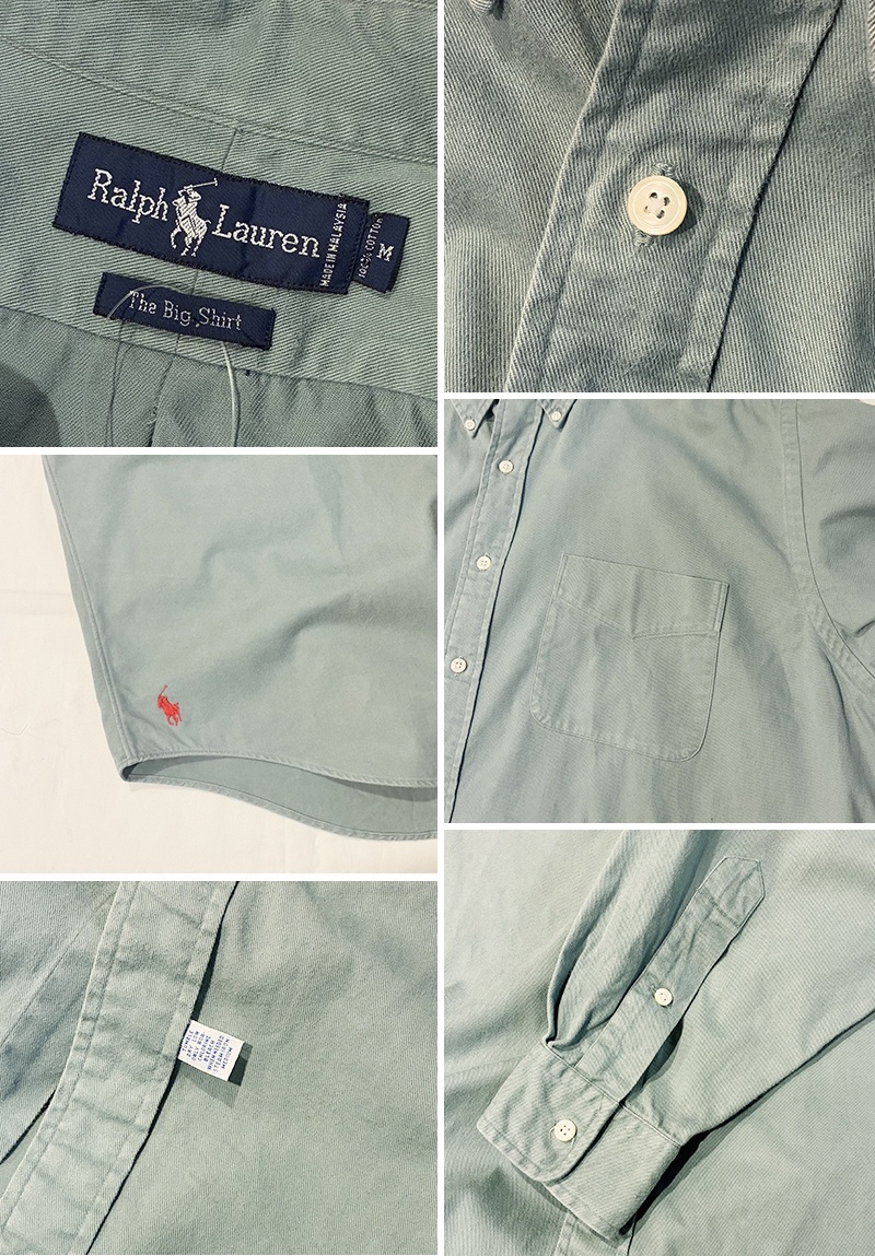 90's ビンテージ【ラルフローレン】POLO ralph lauren Big Shirt ビッグシャツ 青磁色 ボタンダウン【コットンシャツ】【サイズM】