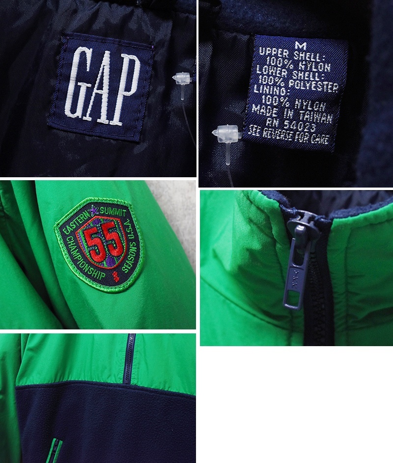 90’s~【ビンテージ】【オールドギャップ】【GAP】【緑x紺】ナイロンxフリース【ハーフジッププルオーバー】【サイズM】 [EL0409-8-80-FA06-H]