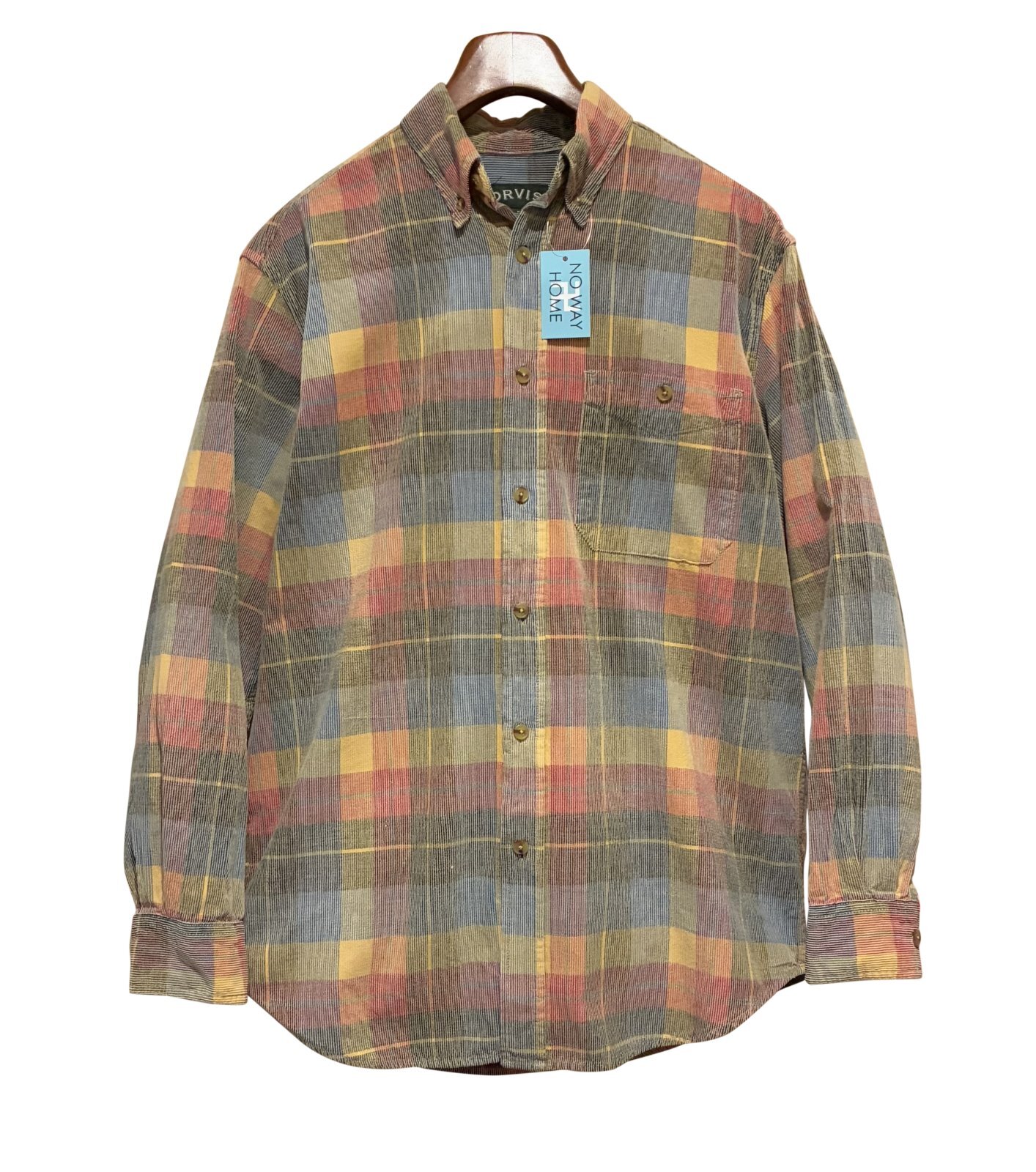 ビンテージ ORVIS【オービス】【赤x青x黄色】チェック【コーデュロイ】ボタンダウンシャツ【サイズM】