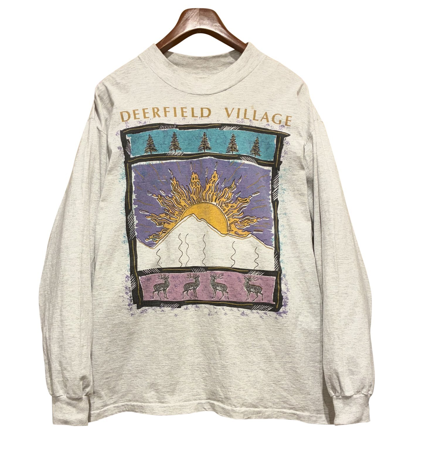 【90’s】USA製【CYRK SPORT】ビンテージ【DEERFIELD〜】太陽 鹿【グレー】【モックネックロンT】【サイズXL】